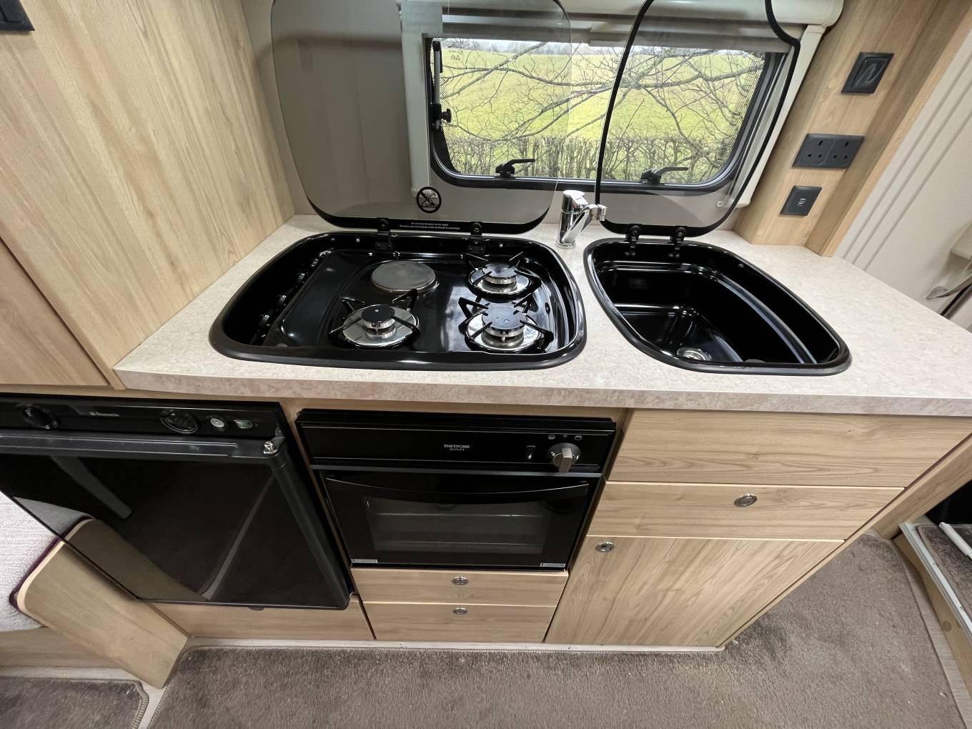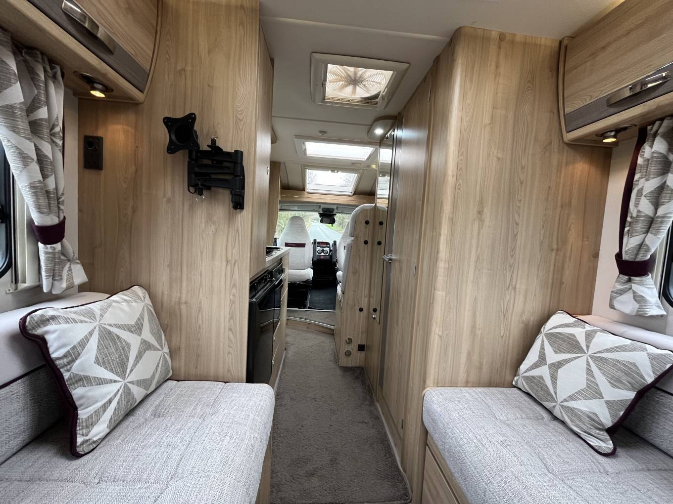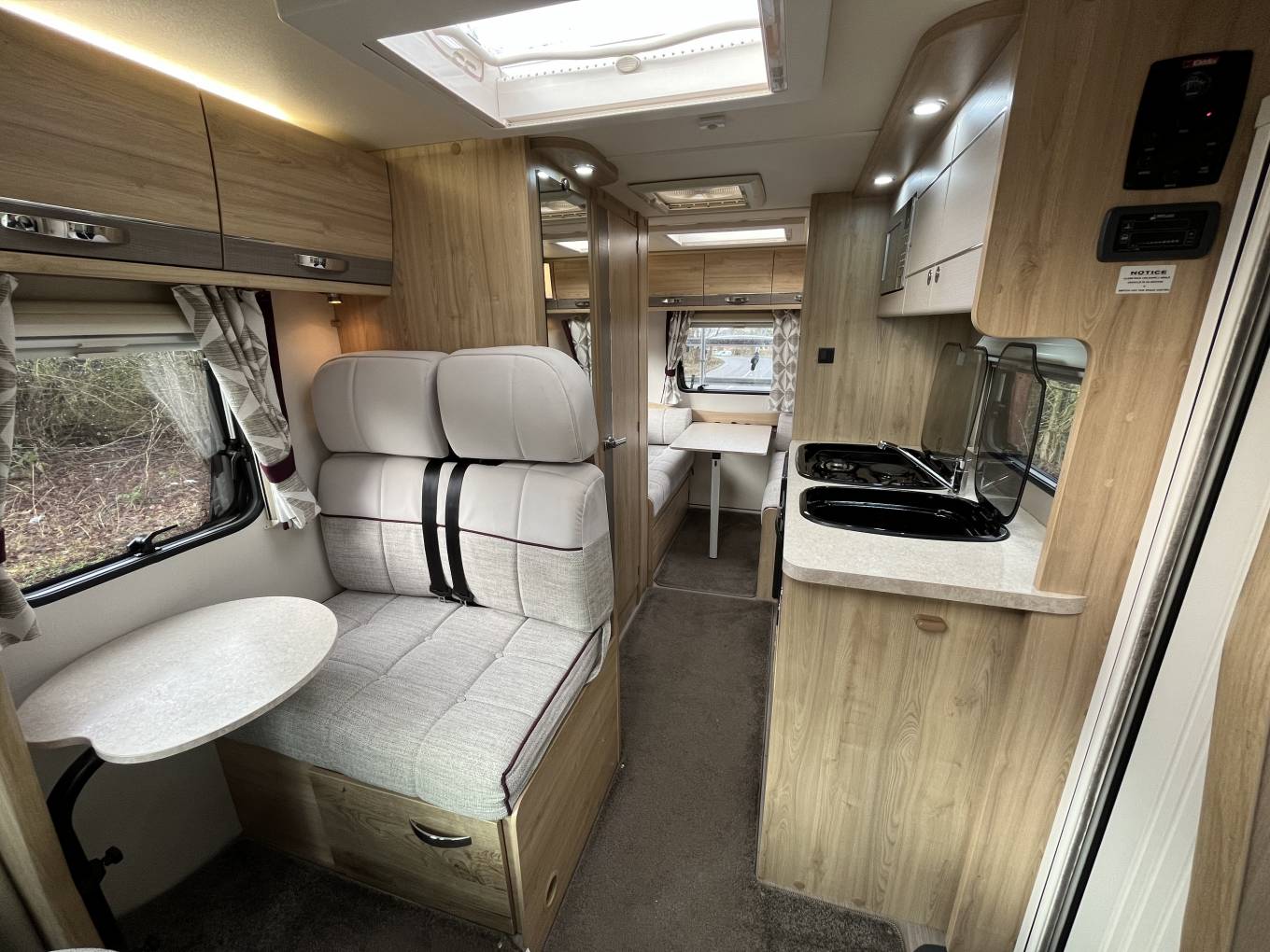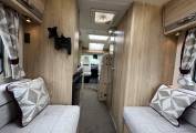 This lovely compact motorhome has a washroom with Toilet, wash basin and shower. kitchen with oven, grill, hob, sink and microwave. To the rear of the motorhome is the relaxing U shaped lounge with large windows all round and access to the inside from the rear.