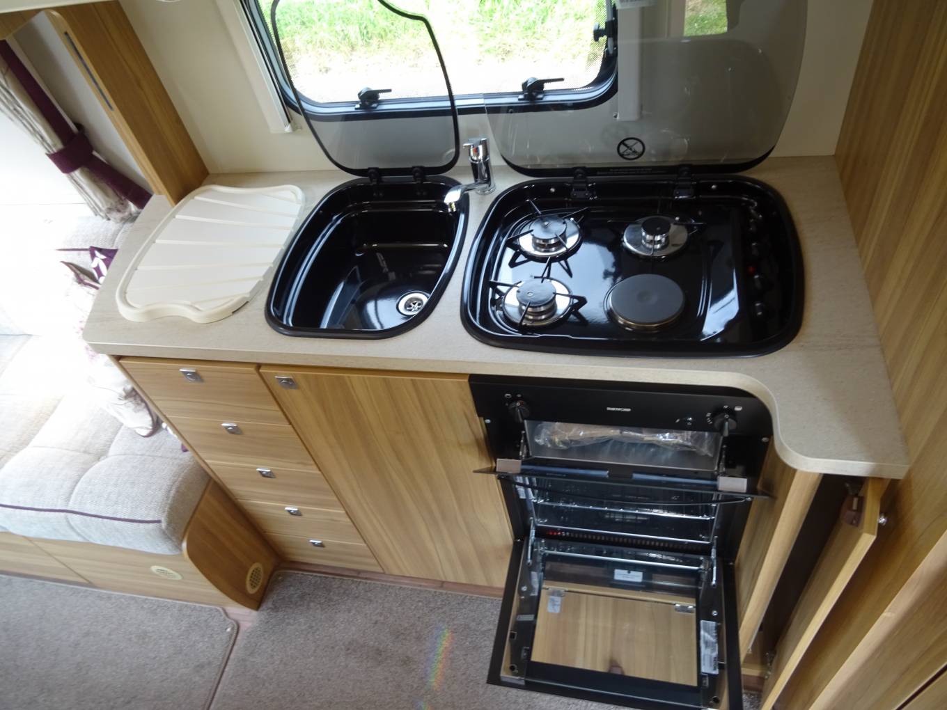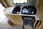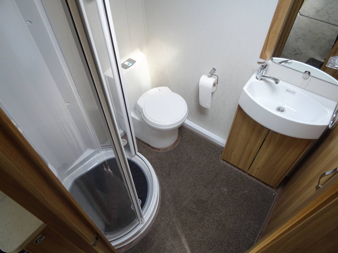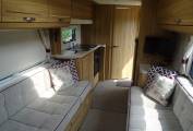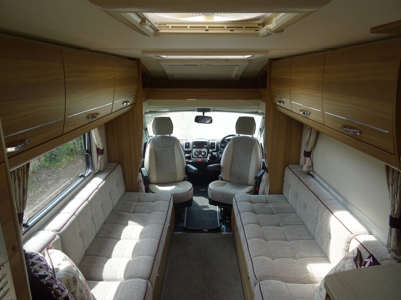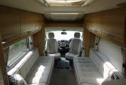 Upon entering to your right you have an extremely large washroom containing a separate shower, toilet, washbasin and even a full length wardrobe with enough space to get changed comfortably. As you work your way through the home you have a oven, hob and sink to your right. Opposite this, is a large fridge freezer with a microwave positioned just above for easy access. Now we come to the living area where there are 2 large sofas on either side accompanied by 2 swivel chairs that all point directly towards the well positioned TV. When you are ready for a much needed lie down, these single sofas can either be used as 2 single beds or one large double bed. There is also extra storage compartments along the top of each side of the motorhome, above the Air Conditioned cab and under each sofa.