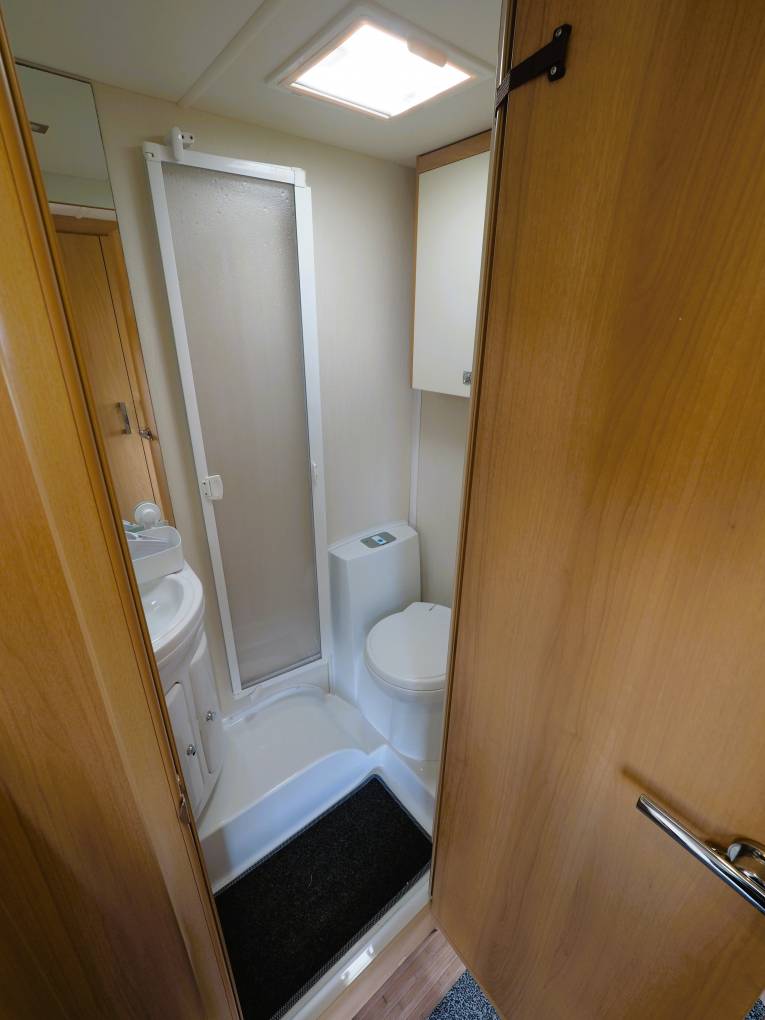 The home from home comforts continue with the spacious washroom featuring electric flushing toilet, sink and vanity with shower over.