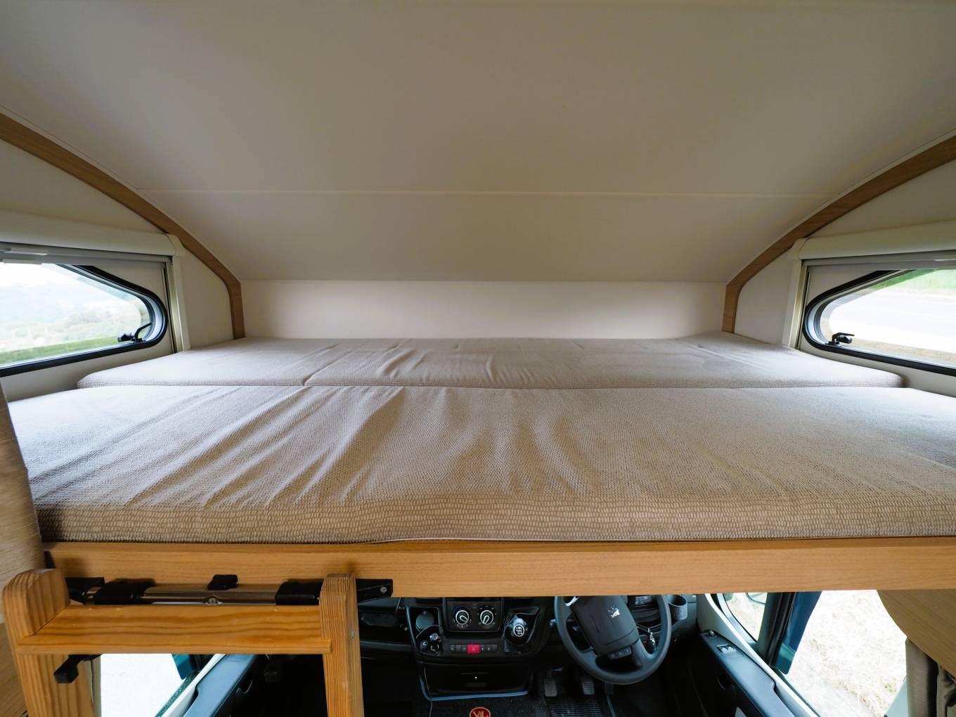 A separate dinette to the front of the habitation area provides another great space to relax and eat with the space converting to a second double bed. Above and over the cab is the third double bed space with privacy curtain and courtesy LED lighting.