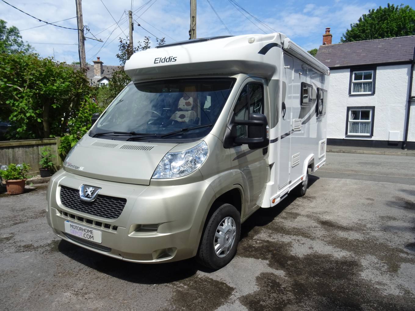 Welcome to the sale of this 2014 Elddis Prestige SE, two berth, two seatbelt low profile coachbuilt motorhome. The motorhome is based on the Peugeot Boxer 333 L2 TL HDI with a 2.2, 130 bhp diesel engine and 6 speed manual gearbox and only 7825 miles on the clock. Air conditioning and Cruise Control are fitted. To the rear is the U-shaped lounge which converts into a double bed or two single beds of approximately 6 feet x 2 feet 3 inches. There is a free standing table which can be used both inside and outside the motorhome. The kitchen is located on the nearside next to the habitation door which boasts a full cooker with grill and hob, a microwave, a Dometic fridge with freezer compartment and a sink. The sink also has a lift out draining board. There are two three pin sockets above the worktop, ideal for an electric kettle on hook ups. Opposite the kitchen area is the washroom with a pull out sink unit, cassette toilet and shower. Outside there is a bike rack, electric step and Fiamma wind out awning. Overall a lovely motorhome with very low mileage. This vehicle is based in Flintshire.