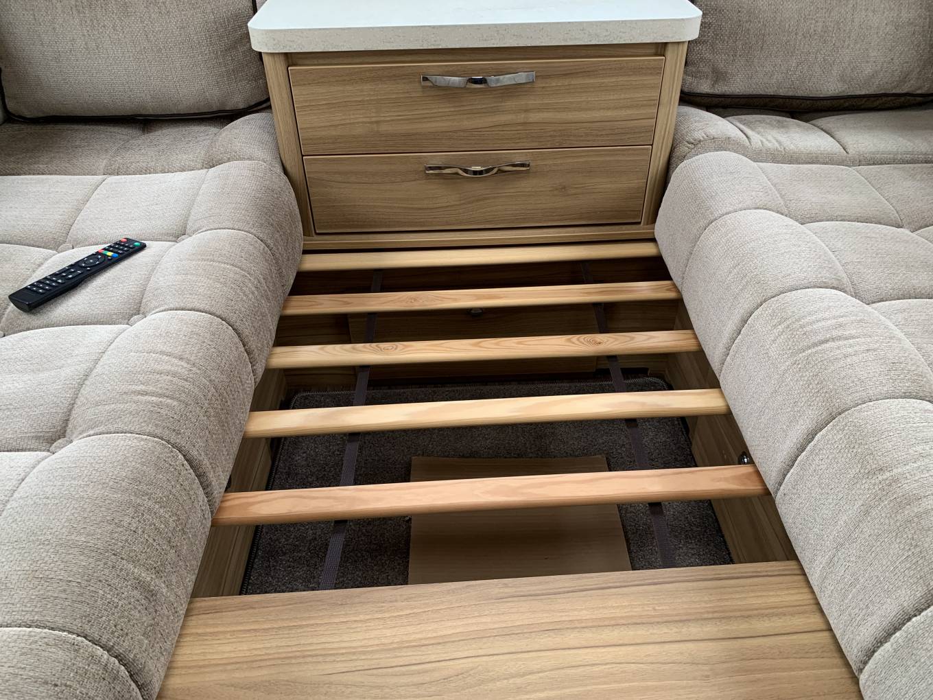 with the forward dinette doubling as another relaxation area kids or guests can