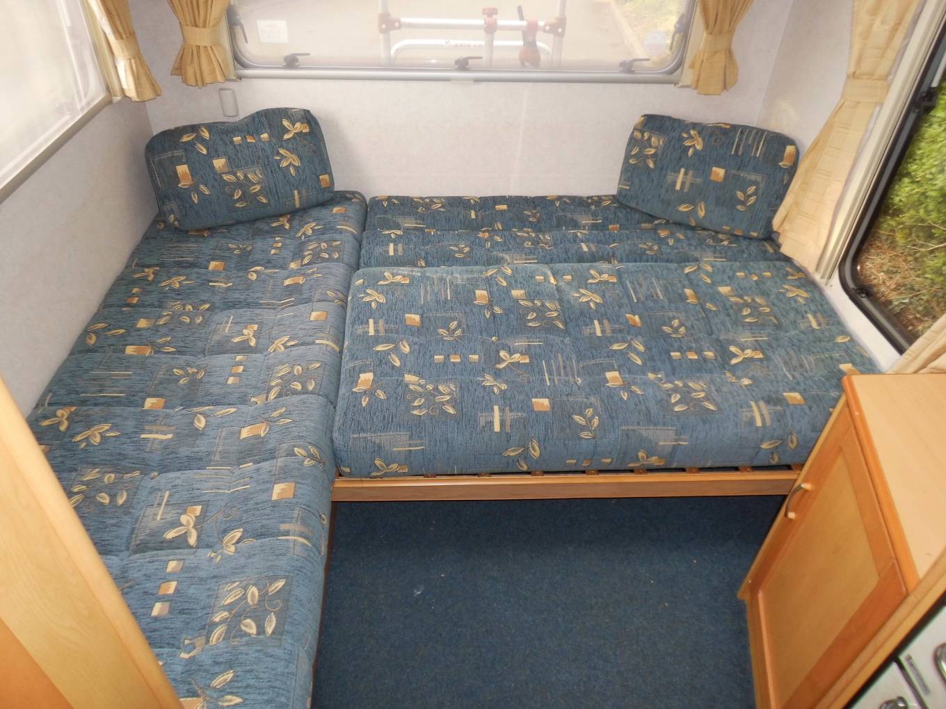 MotorhomeDepot present this excellent example of 2005 Elddis Sunseeker with the popular rear L-shaped lounge layout, giving a airy feeling of space and providing a great place for socialising, eating, relaxing or dining. Power comes from the reliable 2.2 Peugeot Boxer diesel engine combined with a 5 speed manual gearbox along with service history. The main feature at the rear of this 19 foot long motorhome is the L-shaped lounge with great panoramic views, which quickly converts into a generous sized double bed. The side kitchen provides a full 4 gas burner hob, grill, oven, fridge with freezer compartment, stainless steel sink and drainer with plenty of well thought out and adaptable work surfaces. Opposite is the good sized wardrobe space adjacent to the washroom which includes, Thetford cassette WC, vanity washbasin and mirrors, an incorporated shower unit, medicine cabinets and opaque opening window. The overcab double bed is reached via the ladder and below is the cab area with a swivelling passenger captains chair. Outside is a manual entry step, a large fitted roof box for additional storage, roof ladder, Fiamma three cycle rack, awning, tow bar with single electrics, additional waste water carrier, mains hook up cable and a set of levelling chocks. Last Habcheck completed in August 2017 with no damp reported. Please contact Mike on 01865 684 991 or 07983 283285 for more information on this well priced motorhome and to request the extended photo file.