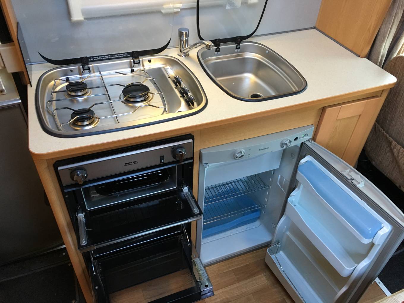 Thetford grill and oven, a Dometic combination fridge freezer and there is a
