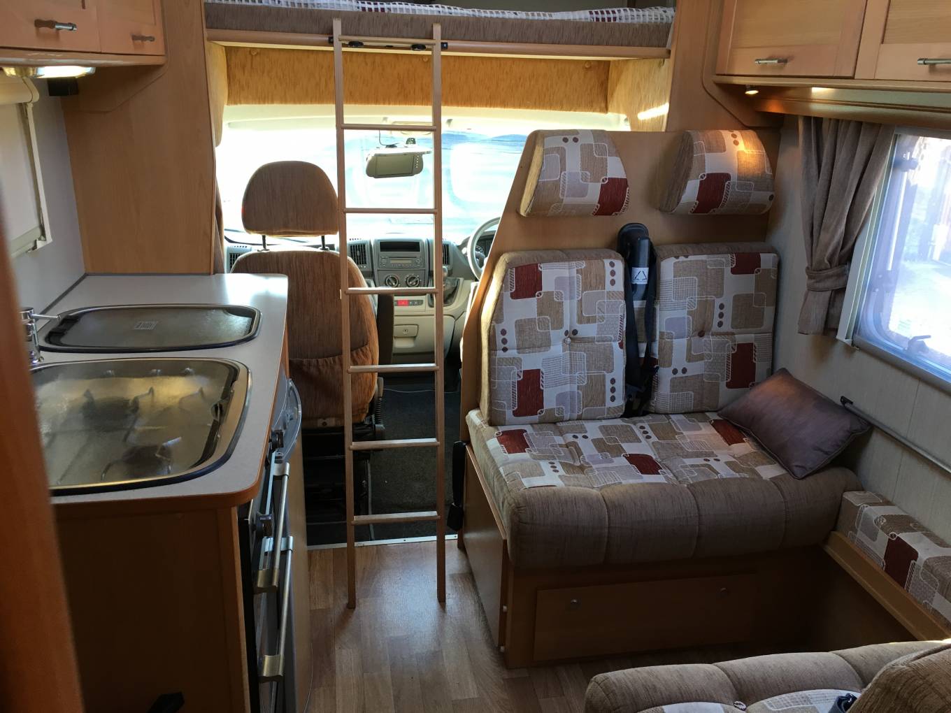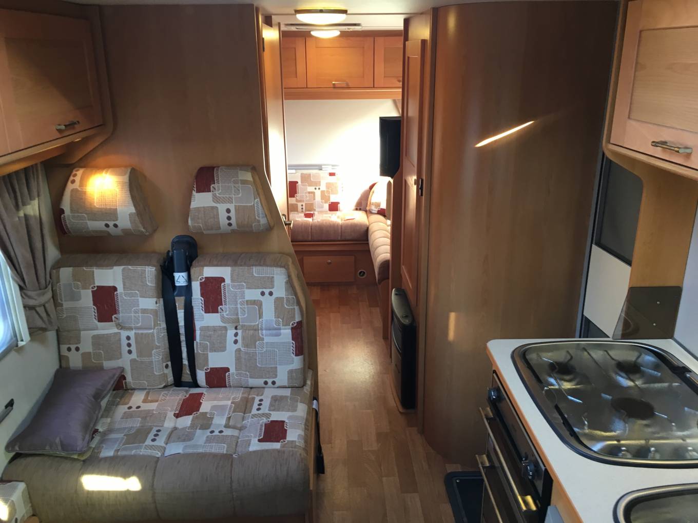 genuine sleeping berths, six travel seats, a good sized U-shaped end lounge, a washroom