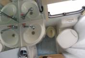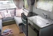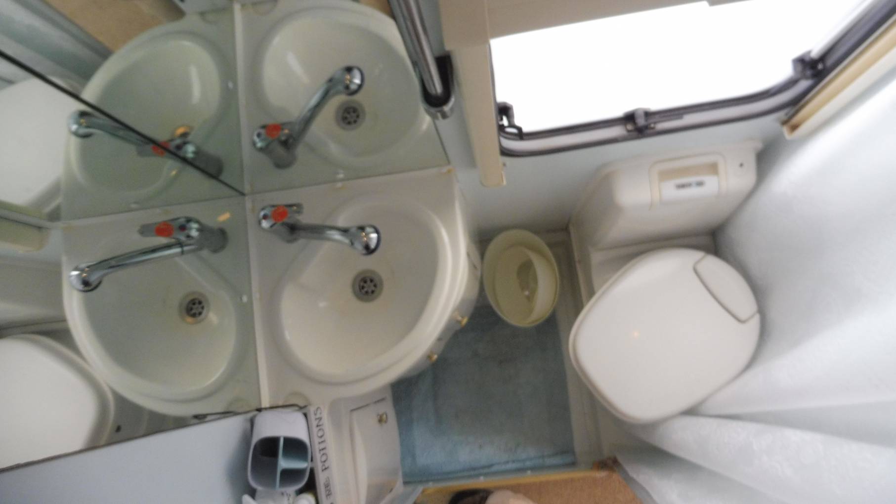 Moving towards the front of the vehicle is a well-equipped kitchen with 4- burner hob, oven, grill, microwave and three-way fridge, everything you might need for rustling up a snack or preparing the main evening meal. Opposite which sits a compact washroom incorporating vanity sink unit, cassette toilet and shower over.