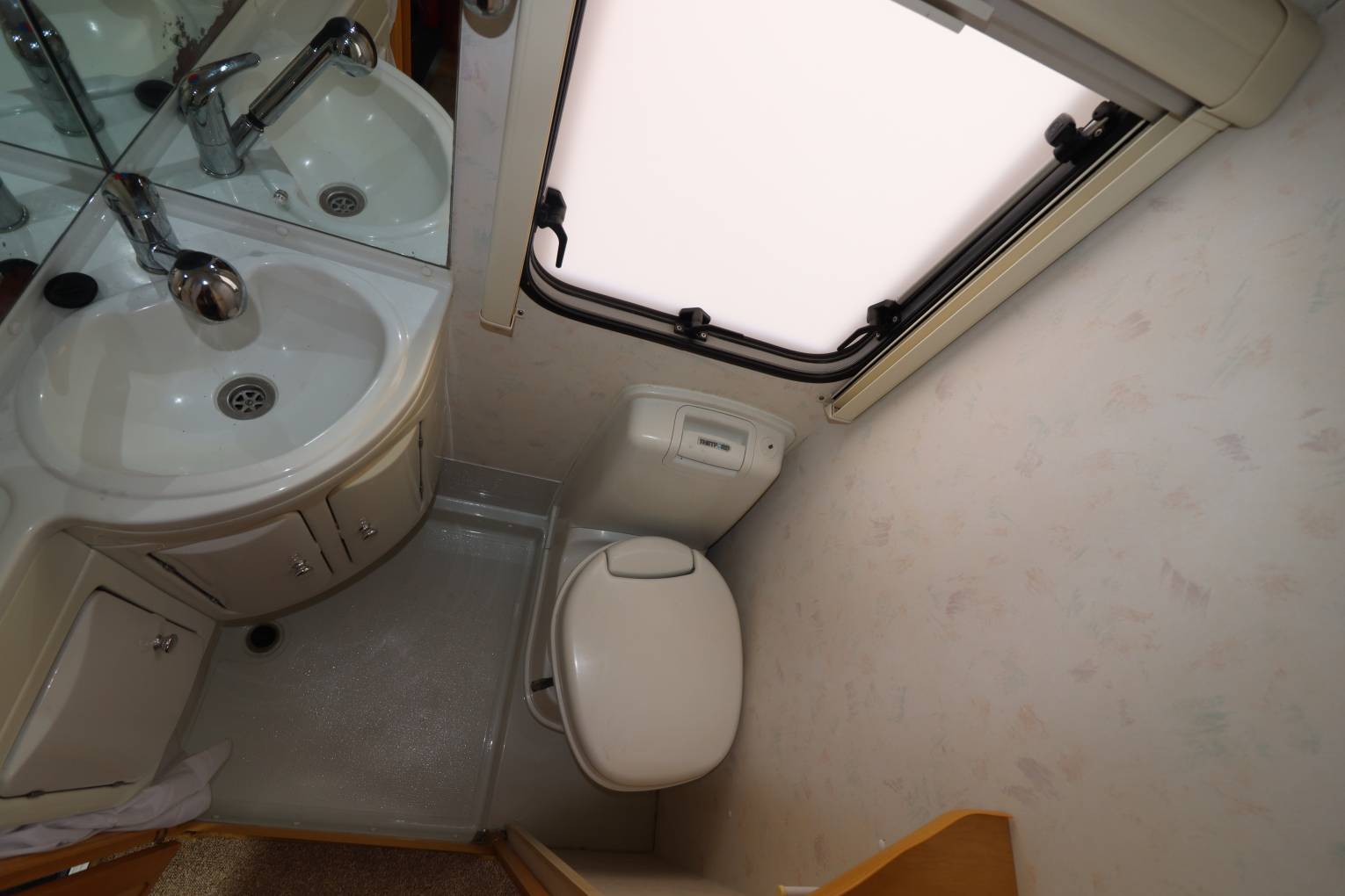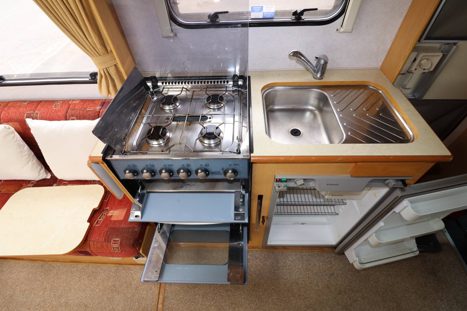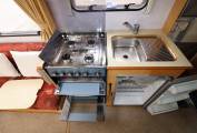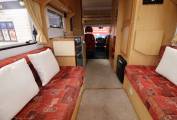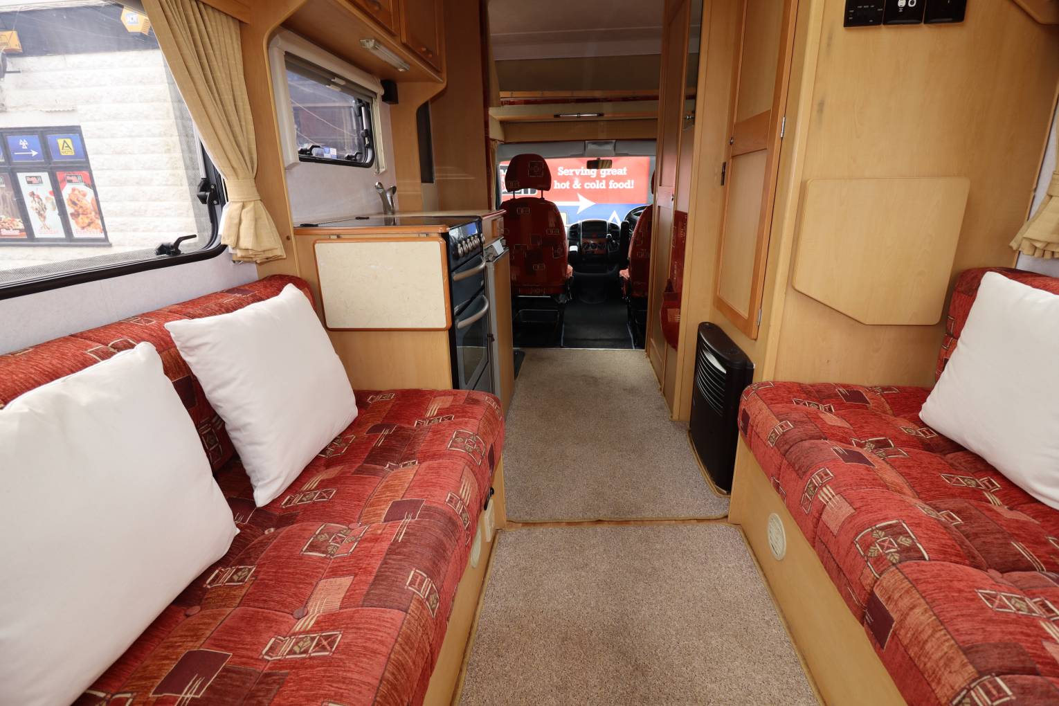 A spacious and comfortable rear lounge 4 berth motorhome. The lounge at the back can be used as 2 single beds or make into a large double bed. The overcab bed is spacious and sleeps 2 people. The kitchen is central with hob, grill, oven, sink and fridge. The washroom is adjacent with toilet, shower and sink. Very nice condition.