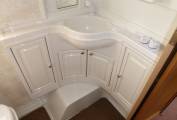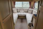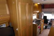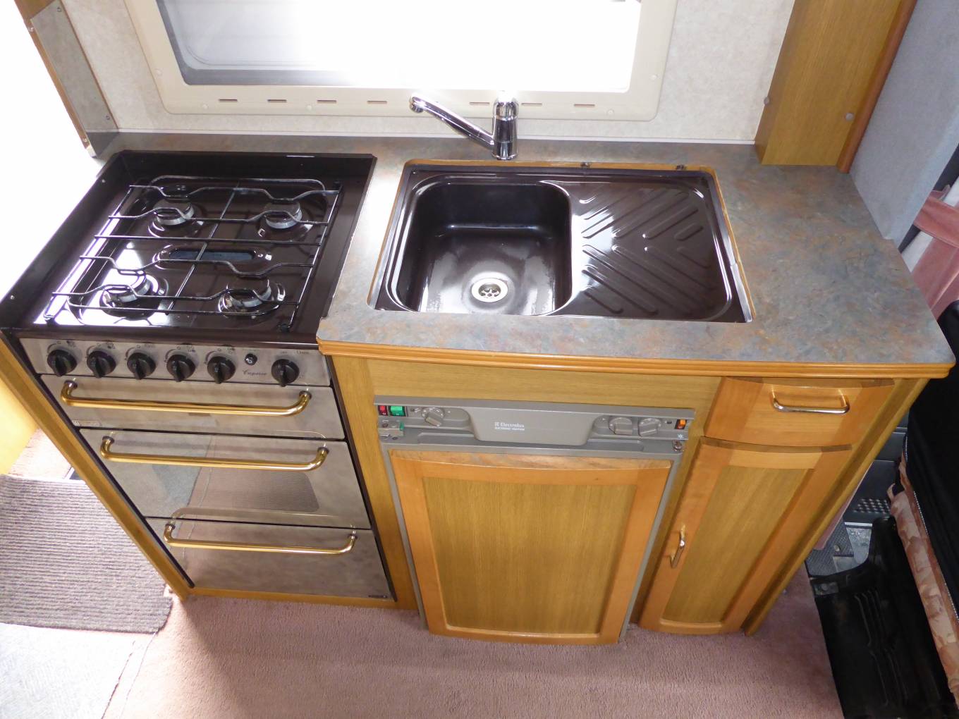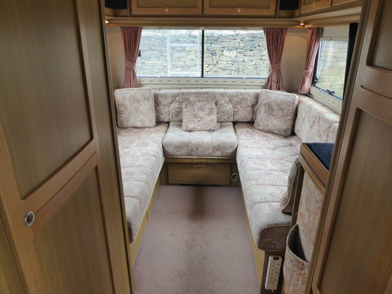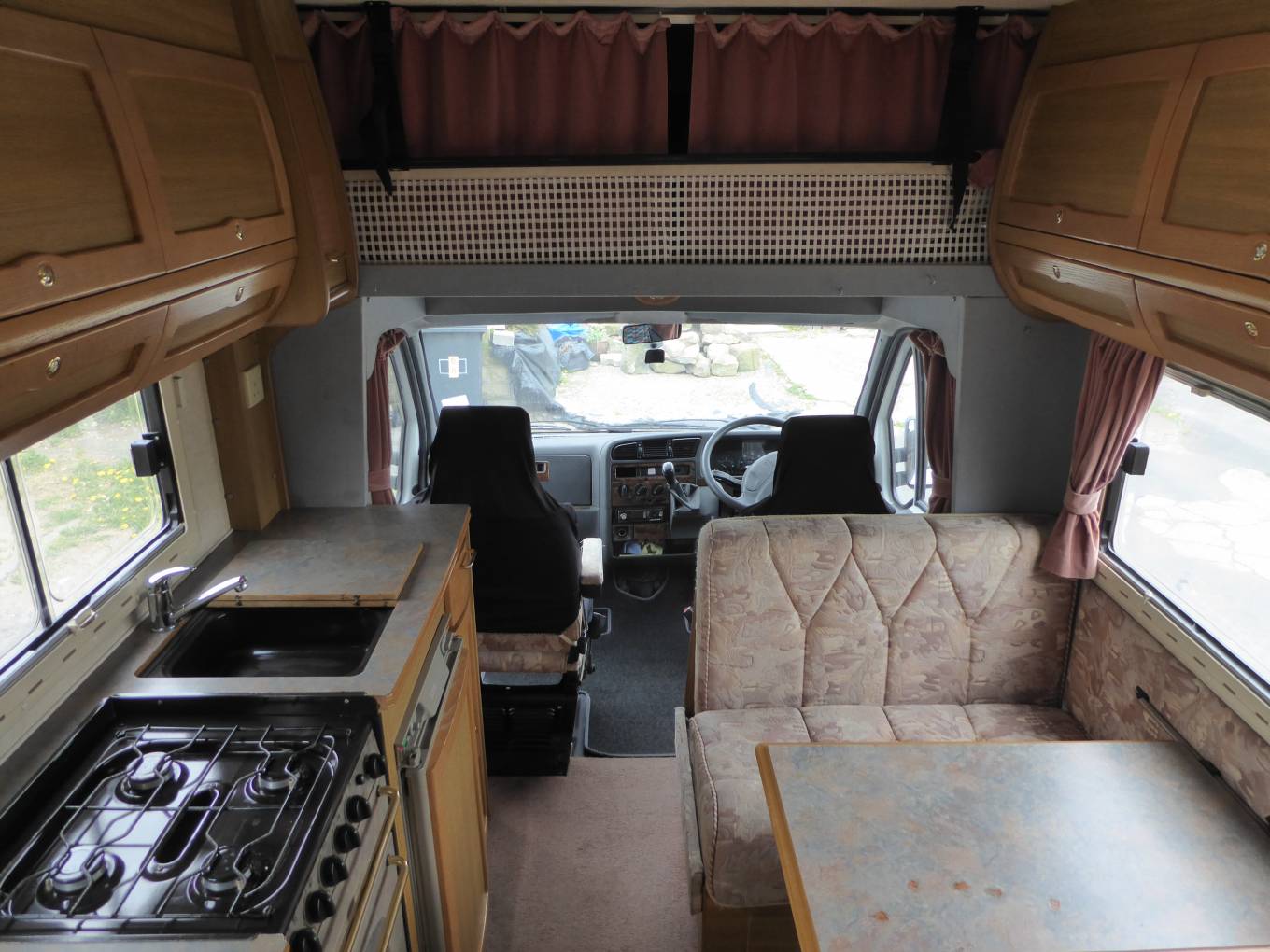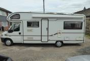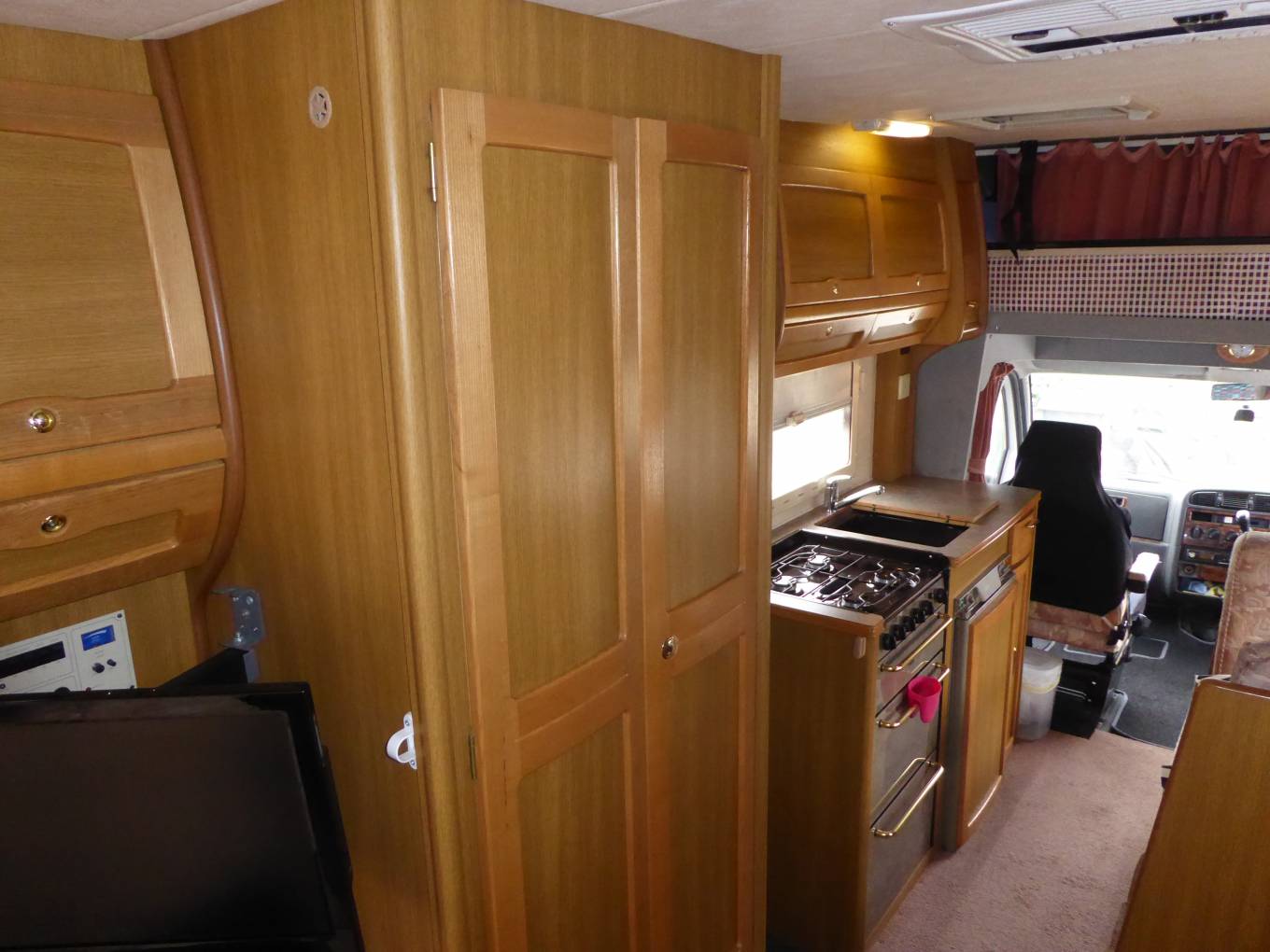 It has 6 berths and 4 travelling seatbelts. Outside is Fiamma F45 awning which also comes with the sides and a clever 2 bike bicycle rack. There are a few small dents on the offside of the vehicle where they were caught in a storm in Spain. Along with the heating is a WTA Blizzard habitation air con system making this motor home suitable for all conditions. Starting at the back is the large U-shaped lounge which is very light and airy which folds down to a large double bed. There is a wooden screen with door to convert this area into a separate compartment. Moving forward is a large wardrobe and well-proportioned washroom and toilet Right behind the cab is the dining area and kitchen with 4 gas rings grill and oven. A good-sized fridge and ample work surfaces which make it a very useable area. The dining area seats four comfortably and there is a spare table. This folds down into a double bed and there is a large roomy over cab double also. The padded ceilings throughout the habitation gives the van a luxurious feel. Starting to show its age a little but still excellent value for money. Part Exchanges are welcomed on this vehicle, for further information and photos please call us on 01423 609985 quoting Reference 15177.