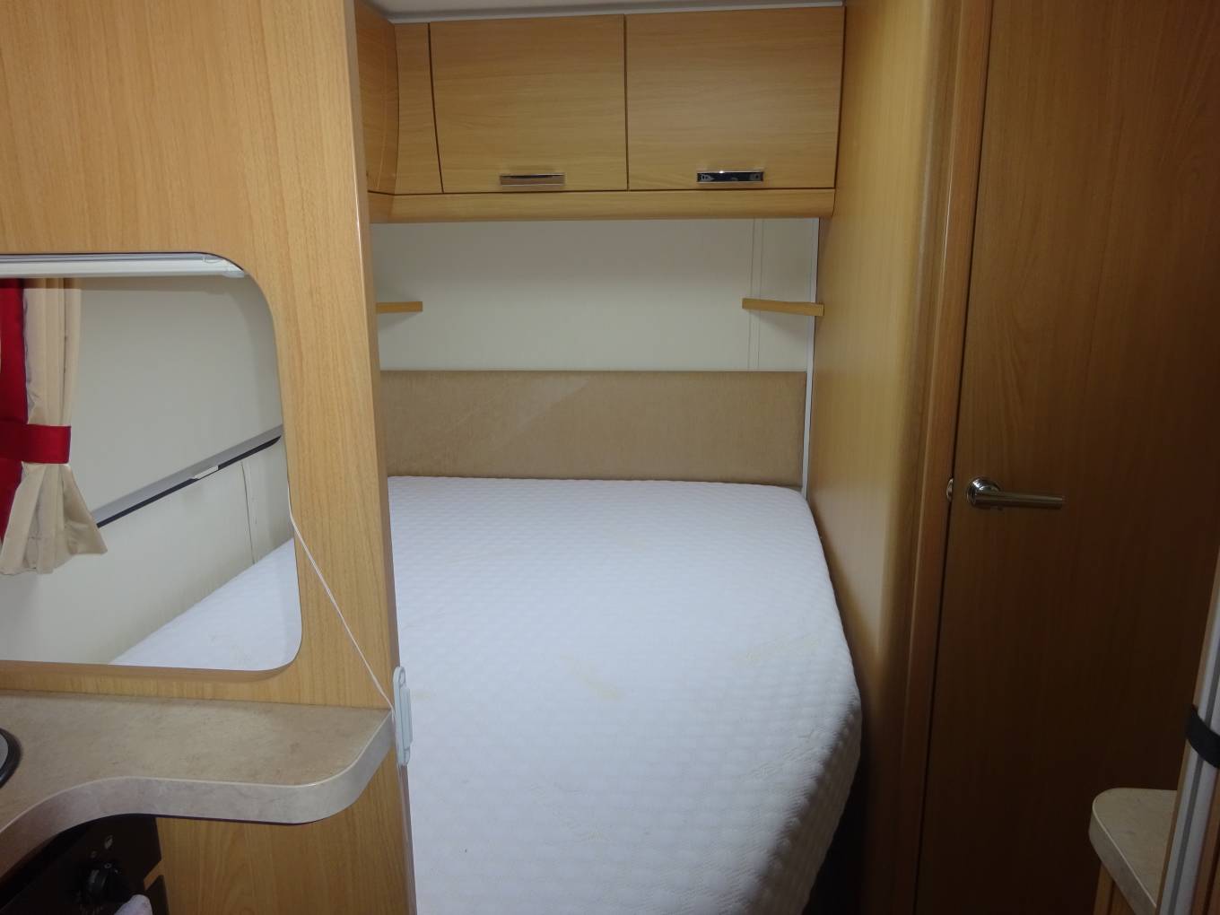 From the rear of the interior with have a corner fixed French bed. The spacious toilet and shower room is next door and there is a convenient privacy screen between this bed and the main accommodation in case you have guests staying. There is ample storage and LED lighting for your comfort.
