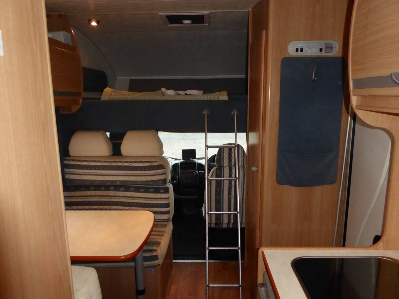 Call with any questions on 01423 609985. This is a Elnagh Marlin 65d first registered in October 2006 it has travelled only 30294 miles with an MOT lasing until June 2019. This coachbuilt motorhome sits on a Fiat Ducato chassis with the powerful 2800cc engine and weighs 3500kg overall. It’s a 6 berth motorhome and has a rear locker with 2 sections measuring 2ft wide x 3ft8inches each to provide plenty of storage under the rear lounge. It benefits from a Maxview satellite system and solar panel. Internally at the rear you will find the U-shaped lounge with 240V TV, the seats measure 4ft 3inches in length and when used as a double bed measures 7ft wide approximately. There is a large washroom which includes a shower with curtain, toilet and sink. Opposite is the galley kitchen where there is a fire that gives blown air heating, SMEV oven and grill, 3 gas burner hob, fridge freezer and sink. The dinette has 2 forward facing seats both with full seatbelts and 2 rear facing seats with 1 lapbelt, the dinette also forms another double bed. Above the cab is a very spacious bed which is fixed in position, overall it measures approximately 7ft x 4ft 7inches which means either 2 adults or alternatively 3 children would be able to sleep here. Upfront you will find the radio/CD player, rear view camera, Parrot handsfree telephone system, electric windows, electric mirrors and rare for a model of this age it has cab air conditioning. This can be viewed in Skipton, North Yorkshire. Please note this vehicle is owned by a dealer, as a potential buyer, should you purchase this vehicle, if the vehicle is not as described, of satisfactory quality or fit for purpose you may have a claim under the Consumer Rights Act 2015. Part Exchanges welcomed on this vehicle, for further information and photos please call us on 01423 609985 quoting reference 85929.