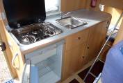steel sink and 3 burner hob. 3 way fridge, separate high level grill and oven.
