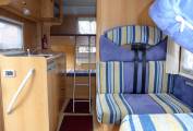 seatbelts in the cab and 4 full seatbelts in the dinette area, 6 people can