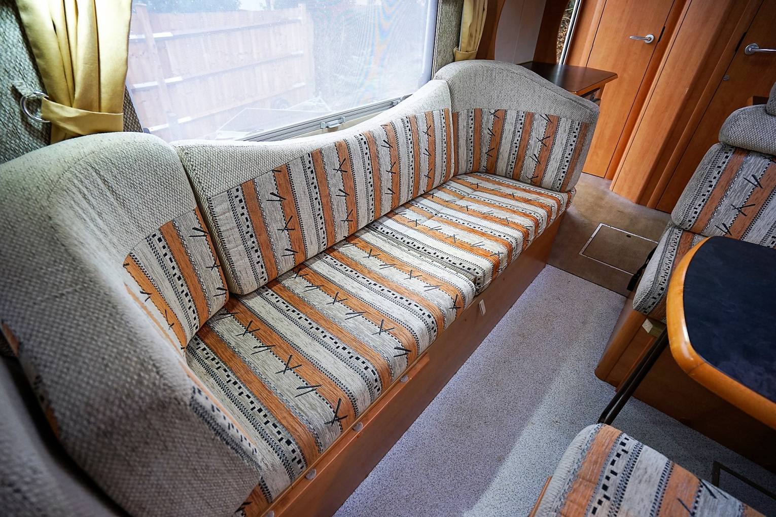 shaped Sofa separating the Cab from the living area with a 2nd Sofa