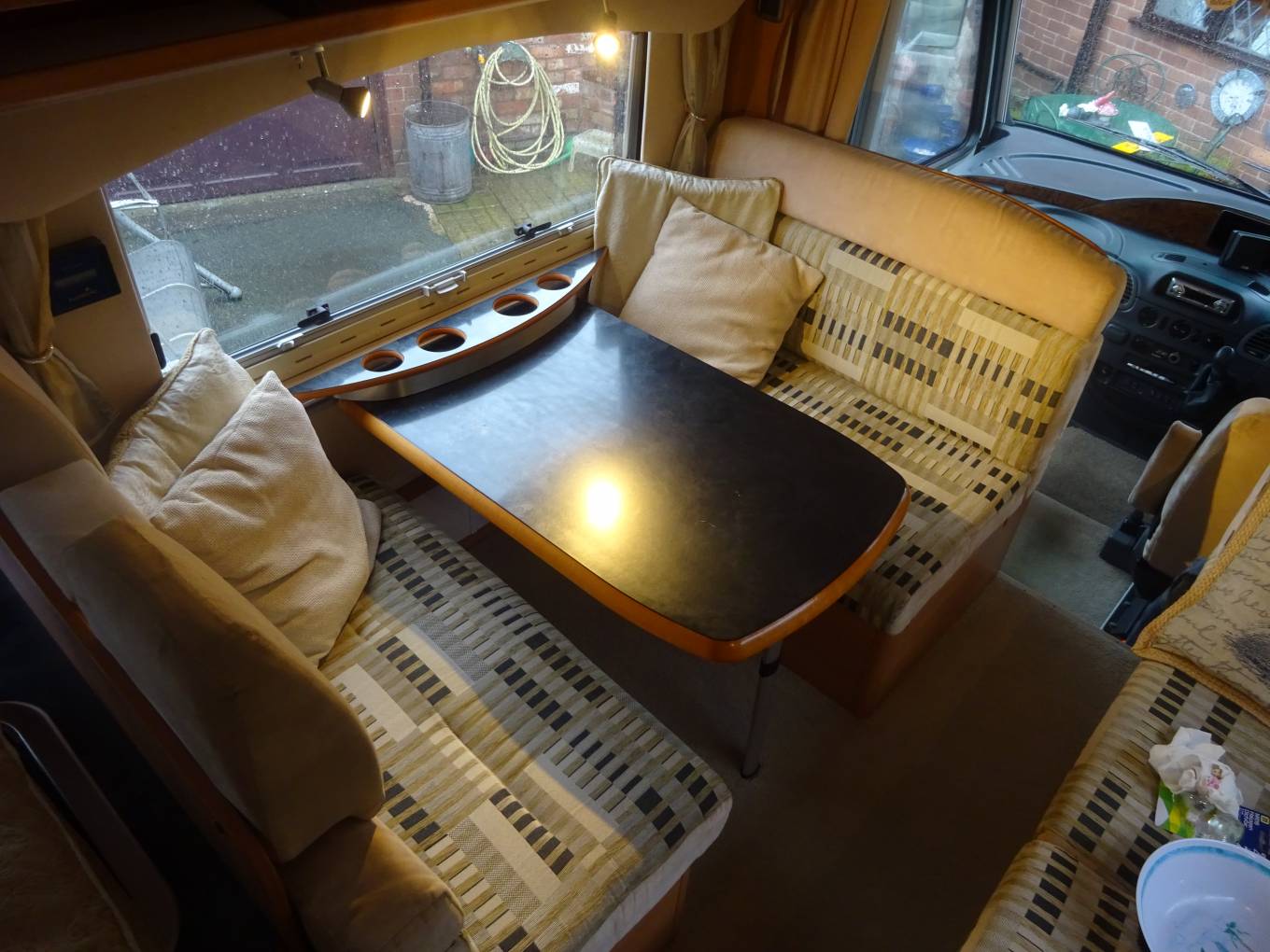 Motorhome Depot presents this luxury 2003 6/7 berth, 2.7 liter diesel Eura Mobil Intega 866 EB on a Mercedes chassis. Firstly, we start at the 2 fixed rear single beds. There is ample storage above and below in the large heated garage. Next is the washroom. The washroom includes a toilet, wash basin and shower cubicle. Opposite is a spacious wardrobe and well equipped kitchen. The kitchen consists of a oven, grill, 3 ring gas burner, microwave, wash basin and 3 way separate fridge freezer. As we move forward through this spacious Motorhome we come to the dinette. The dinette will seat 7 people comfortably and converts into a large bed for 3. At the front of the motorhome there is a conforable drop down bed which is easy to access. Below is the cab. The cab includes Truma blown air heating controlled on the dash, air hand brake, electric windscreen blind and heated wing mirrors. This really is a luxury Motorhome that has been well maintained and cared for. with good Mercedes service history and good habitation service history. It comes with plenty of extras such as a tow bar, solar panel, 1000w invertor, tv and Truma heating in all external lockers. Please call Tom on 01144 055993 for more information and the extended picture file on this well maintained Motorhome.