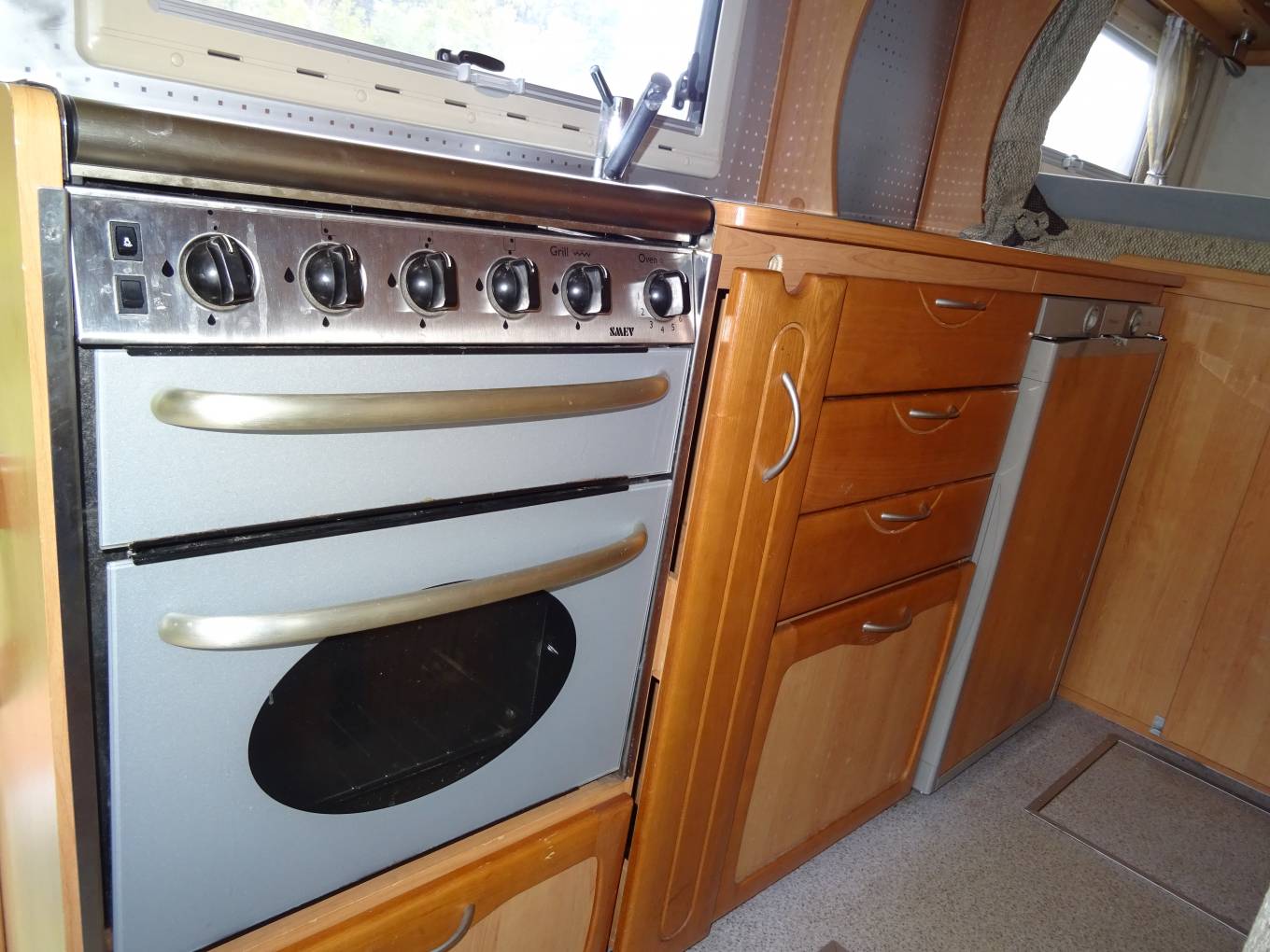 This motorhome has a well-equipped kitchen and includes a 4-burner