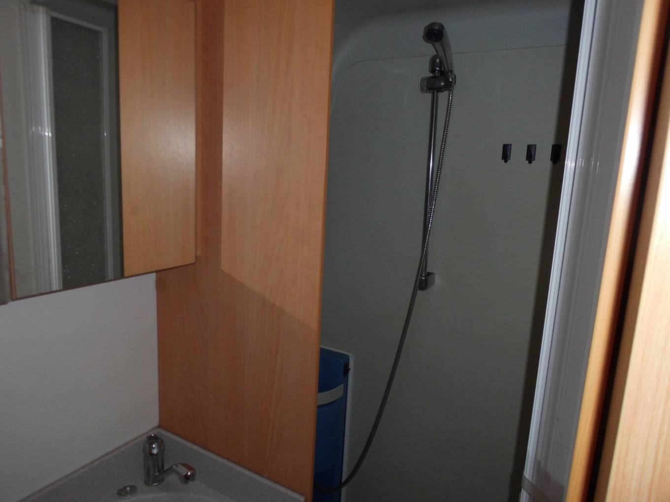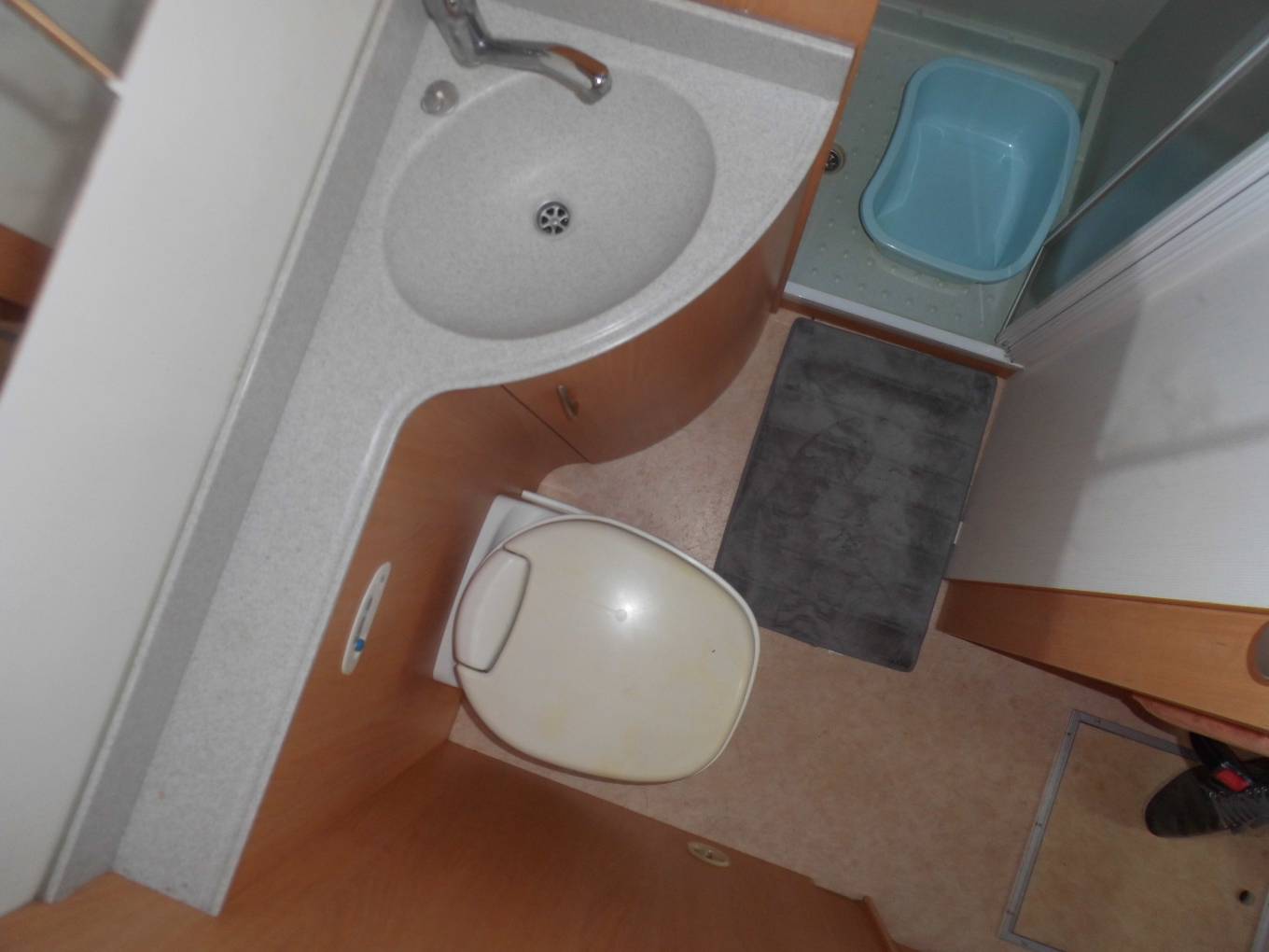 The end washroom layout is very popular as it maximises the living space in your motorhome. This vehicle has a washroom consisting of a toilet, basin and tap, a storage cabinet over the sink and a storage cupboard underneath as well as a separate shower.
