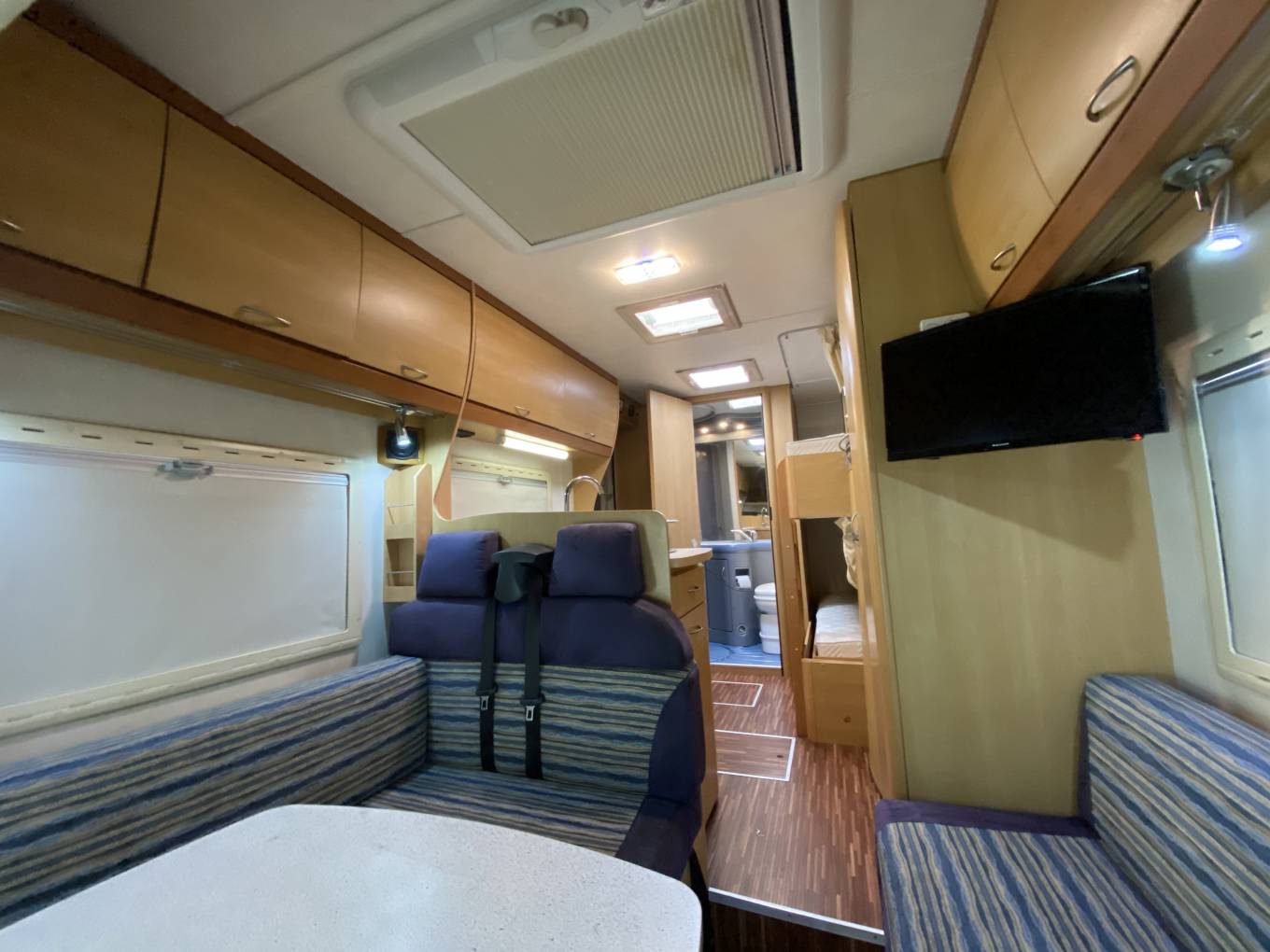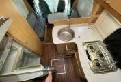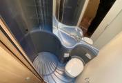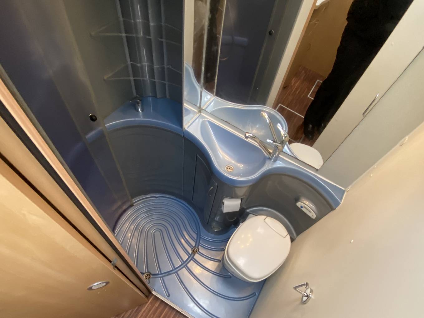 On entering via the habitation door up the double electric step, to your left is the bathroom where you will find a Thetford cassette toilet, a wash hand basin and a semi-separate shower.
