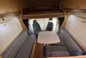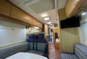 A multi-direction movable dining table is fixed to the centre of this area and the two cab seats swivel to complete this lounge space.