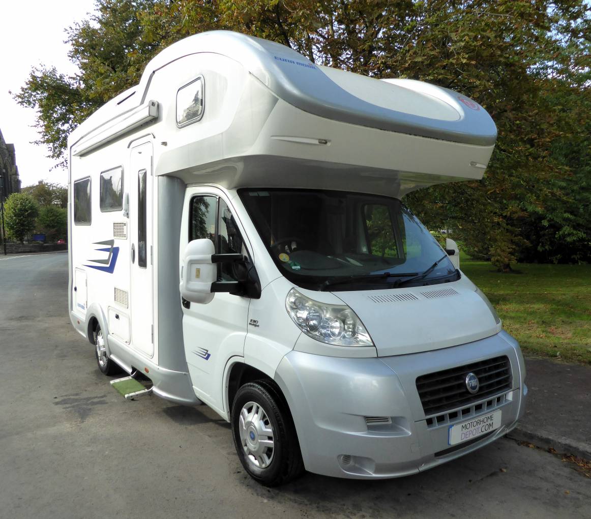 This Euramobil Terrestra 570HS, is a lovely 4 berth, 6 metre, 3500 kg, German built, coachbuilt motorhome, with end lounge, 4 belted seats, and overcab bed.