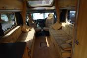 Moving to the front, the whole area has a very light and airy feel to it, with light flooding in from the large sunroof over the cab and the light coloured upholstery ensuring the area is nice and bright. The opposite facing sofas quickly make into a large double bed, but it would be possible to use these as single beds dependant on height.