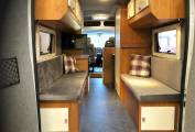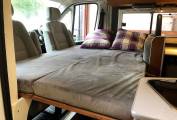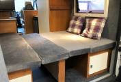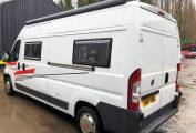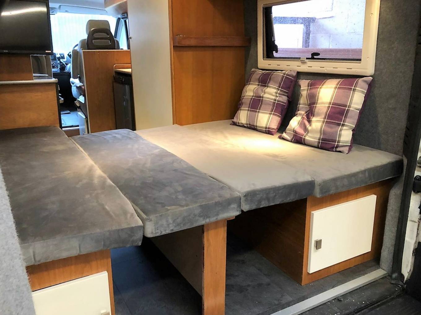 Please call with any questions on 01423 609985. This is a recent Fiat Ducato LWB van conversion, that is finished to a good standard with all space used to the best it can be. This is one of several conversions undertaken by the owner and has been the vehicle he has used himself; he is MD of a joinery company. What makes this unique and will appeal to couples or families, is the 4 seat belts and ability to make a double bed at the rear or 2 singles and then a double in the front dinette, plus many extras that have been fitted and are not found on manufacturer models. It has travelled 73,319 miles and has a MOT lasting until February 2021. The standout features of include the fantastic rear lounge, with 2 long sofas, which can be used as single beds, or a generous double across the full width and combined with the rear doors, when open, give a fantastic view outside. There is plenty of storage above and below the seats and 12 storage cupboards in total. The washroom has a toilet and drop down sink. The kitchen has a 3-burner gas hob, with oven and grill below, plus sink, fridge freezer and microwave. This campervan benefits from 2 swivel seats that help create the space for the additional double made in the centre dinette and 6 speed gearbox. Additional features include solar panel, TV, hot and cold water, awning and Heki roof lights. It is in good condition and should be viewed at the earliest opportunity near to Pontefract. Part exchanges are welcomed on this vehicle, for further information please call us on 01423 609985 quoting reference number 119969