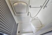 the galley is the surprisingly bright modern and spacious bathroom with