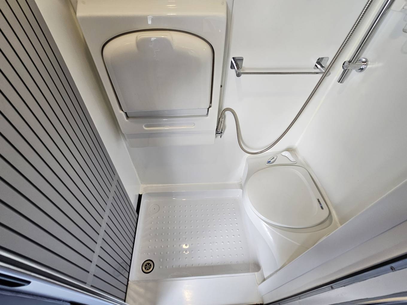 electric step outside of the sliding habitation door. Above the door is a 4m