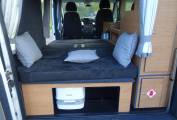 The habitational area has overhead natural light from the roof light, which has a fly screen and a blind built in. Energy saving led lighting has been installed as well as usb connections, 12v points and 3-pin mains sockets. Your privacy is ensured with the silver screens previously mentioned, and also window curtains installed throughout. In the cab, the driver and passenger have a JVC radio with ipod/usb and mp3 connectivity, electric windows, blown air heating and a drivers air bag. Externally, we have a 230v hook-up point, a solar panel on the roof and a tow ball with an electrical connection for your trailer. Please request the photo file for this great compact Camper, to appreciate the great conversion build quality and layout.