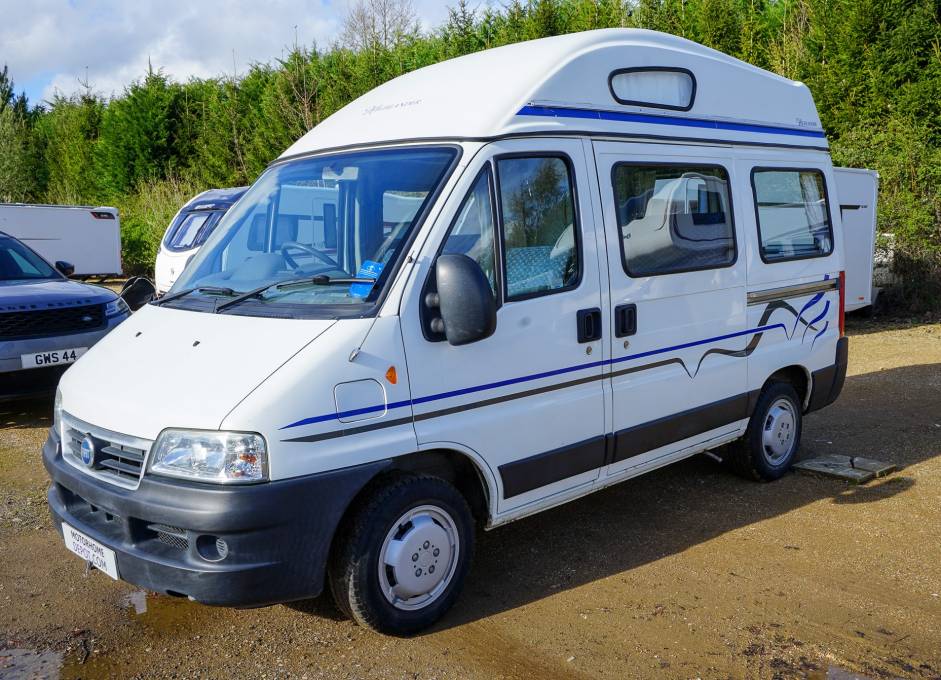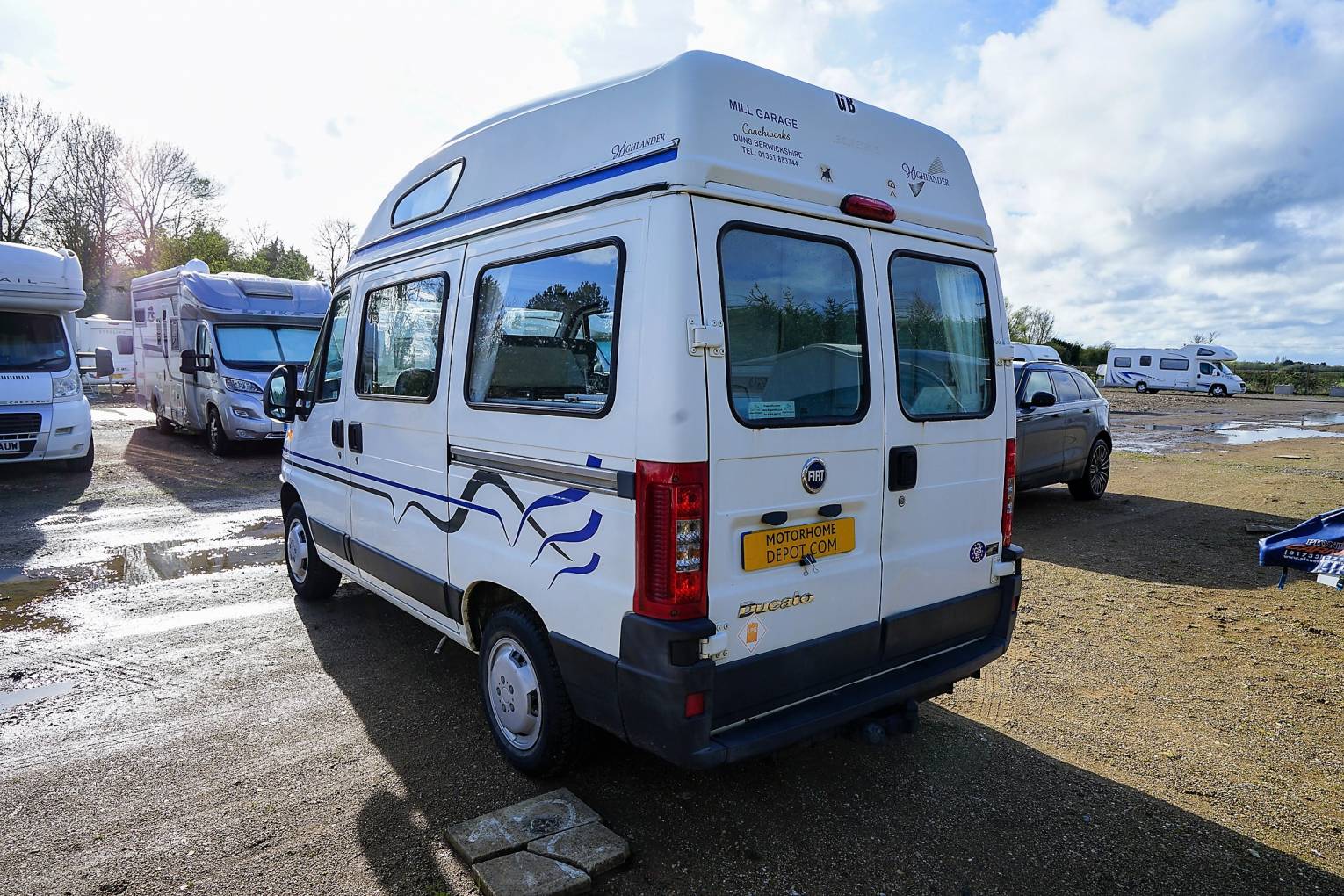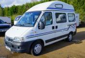 2006 Fiat Ducato Highlander 2.0 JTD SWB High Top Campervan. 2 Berth, 5 Seat Belts, Toilet, Hob, Grill, Sink, 3 way Fridge Freezer. Sleeping accommodation can be configured as 2 Single beds or one Double. Captains Swivel Seats, Tow Bar, spare Wheel and awning Rail.