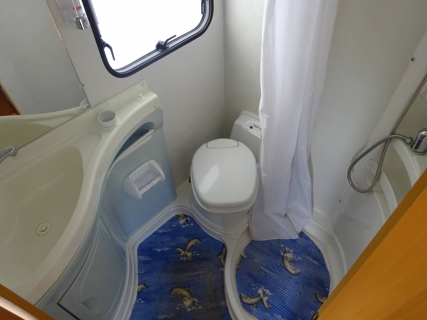 The washroom and shower room enclosure is bright, airy and fresh, and the V5 and 2 sets of keys are present. There is a TV aerial and TV DVD combo for those rainy days, and this is a ready to go touring family campervan. There are 6 seat belts, and this is really a 4 plus one sleeper with the rear dinette converting to an additional single bed, or it could sleep 2 younger people.