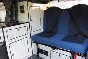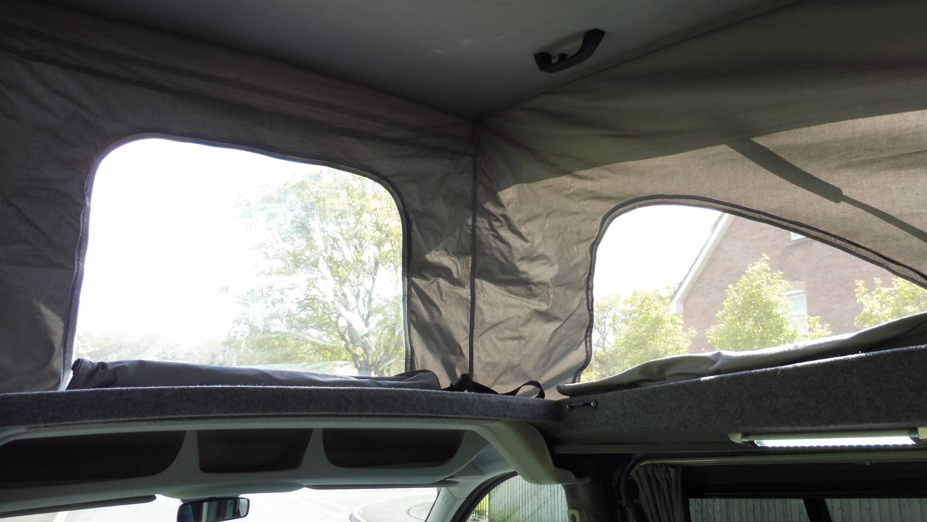 At night the rear seats convert into a small double bed. Further sleeping could be arranged in the roof by purchase of the appropriate boards. A tent-awning is included in the sale which provides further living space.