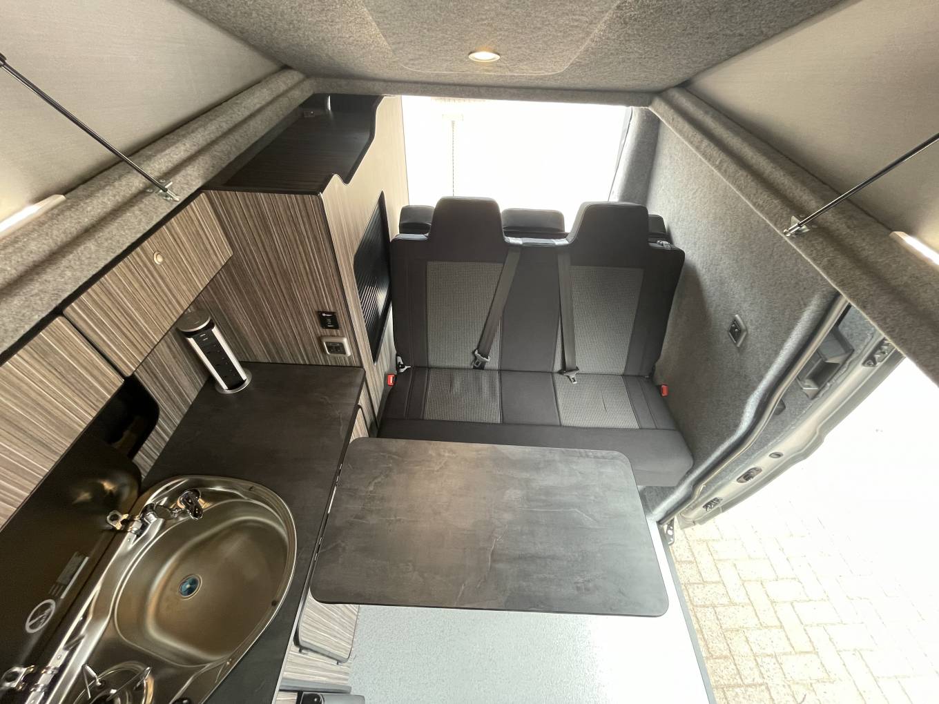 The double front bench passenger seat swivels and together with the rear seats and removable table provides a perfect dining space.