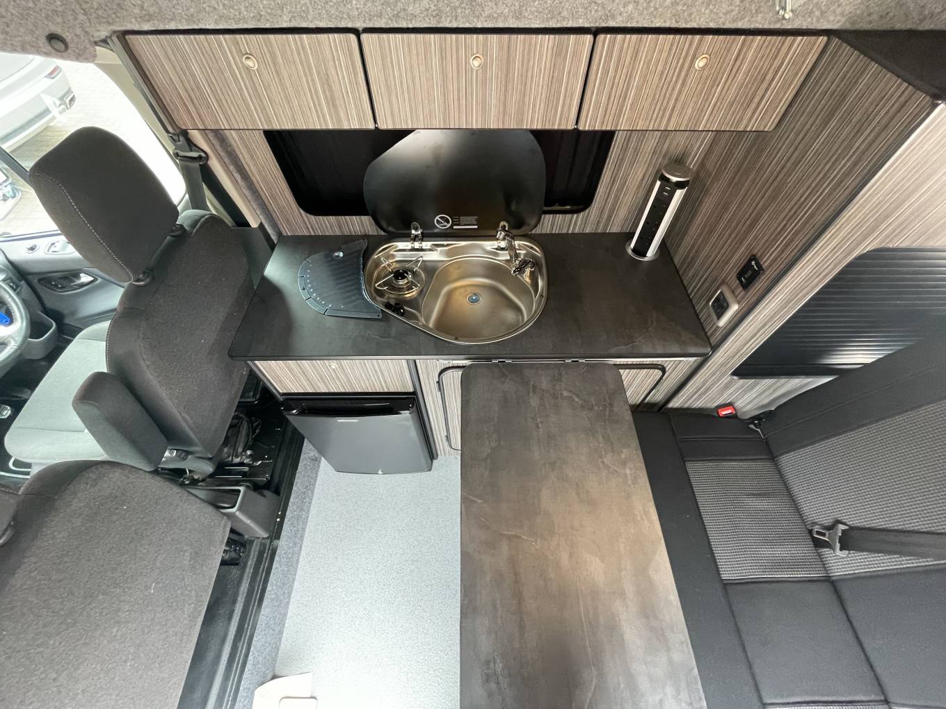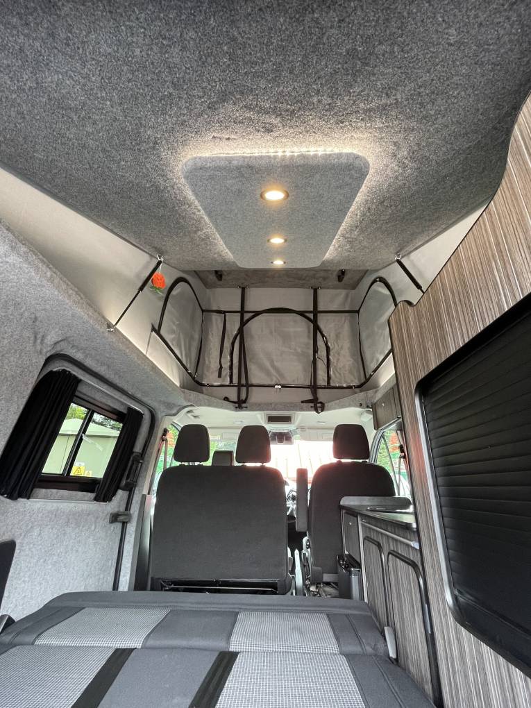 The camper comes with 5 travelling seatbelts, driver and passenger air bags, electric windows, heated mirrors, heated drivers seat, front and rear sensors, front silver cab blinds, 1100w invertor, diesel heater, waste water tank, hot water heater, external shower point, 230v hook-up, gas bottle and awning rail.
