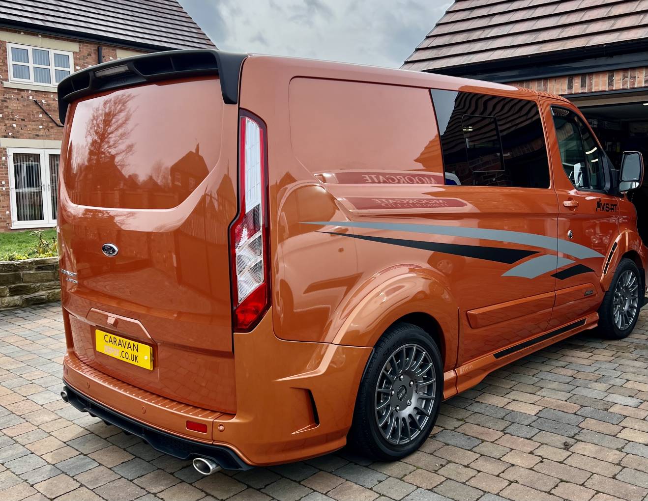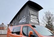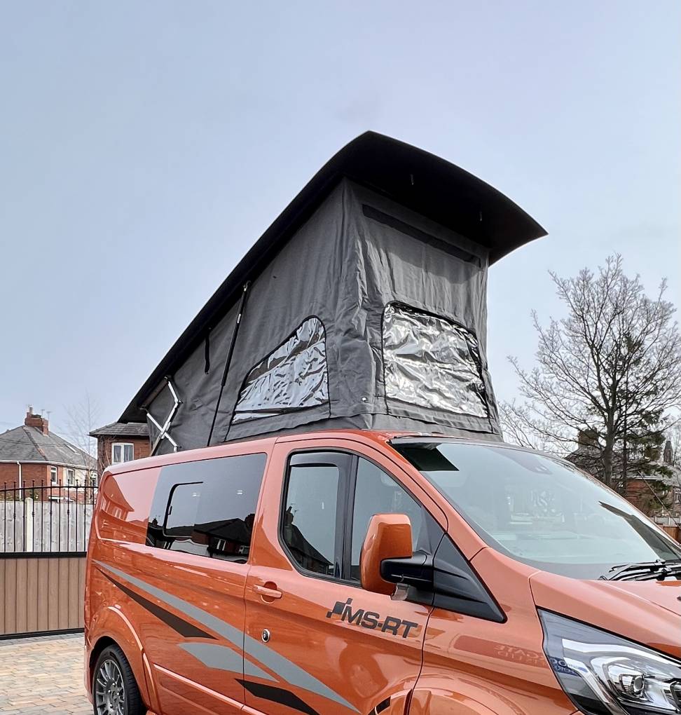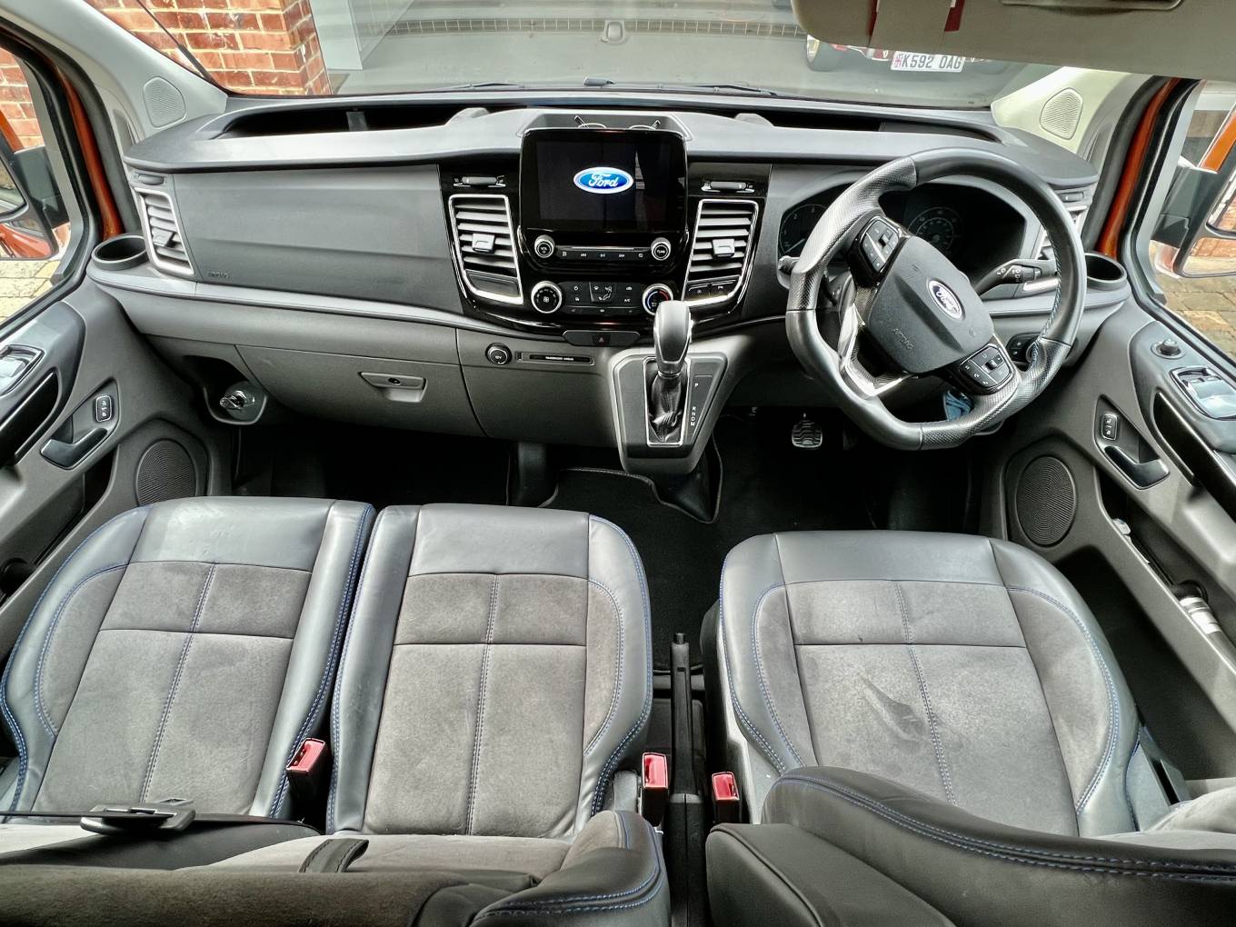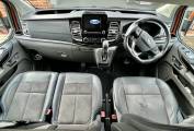 Motorhome Depot are proud to present this immaculate professional conversion Ford Custom MSRT Limited Edition Camper. Having just over 11500 miles on the clock this vehicle is Automatic has Electric windows, Bluetooth, Cruise control, Full internal and External LED lighting, Carbon HiLo roof Upgrade(still under warranty) When used as a bed it has the weight capacity for two adults, full sports kit, Rear Rock and Roll bed upgraded with nappa leather and alcantara of the cab seats, this bed system that runs on rails so the bed/seat can utilised in any position.