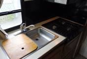 The kitchen has 3-burner gas hob, combi microwave-oven and a