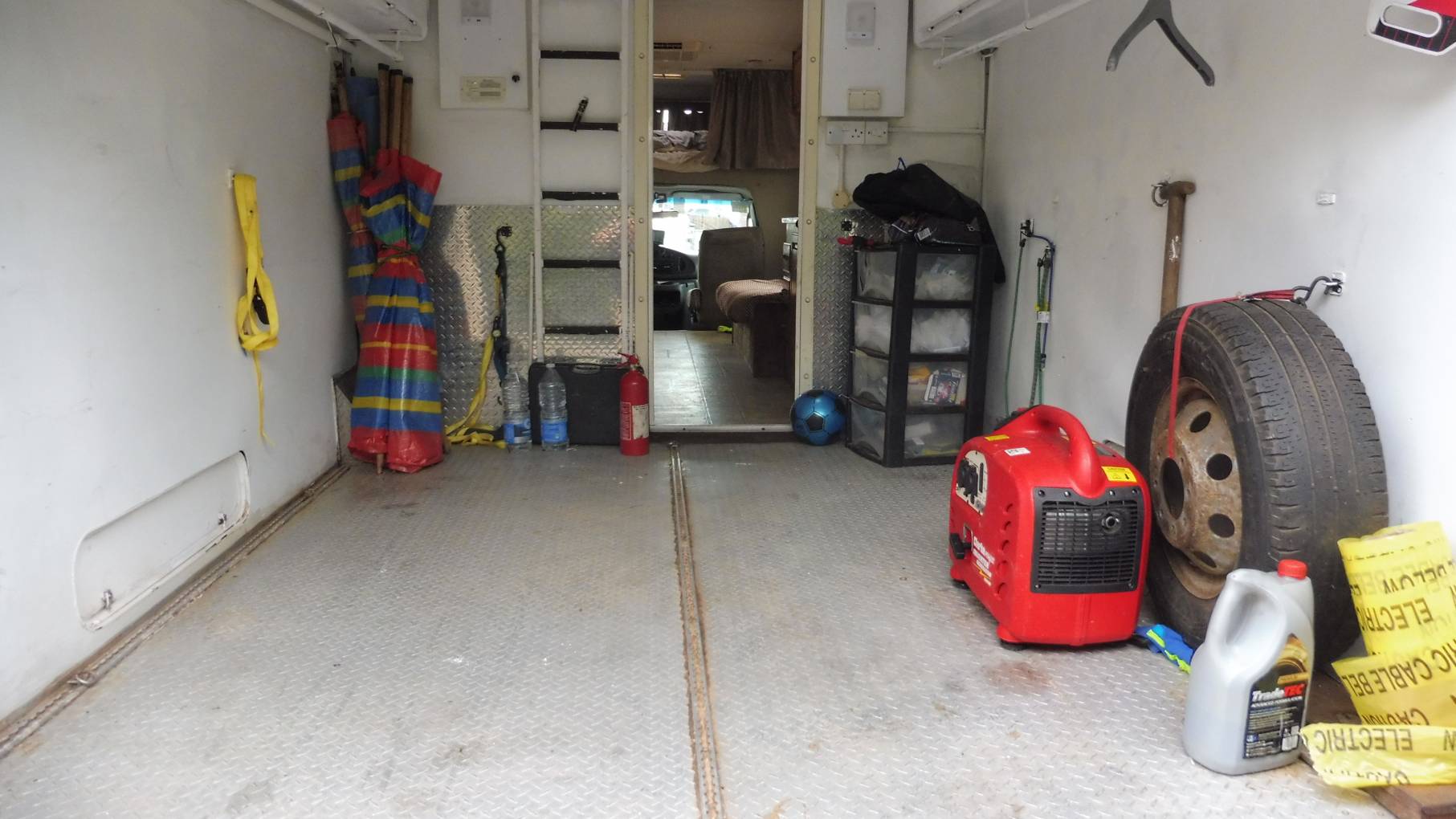 Let’s deal with the most important bits for a Race Van. It has a huge garage with full aluminium chequerboard