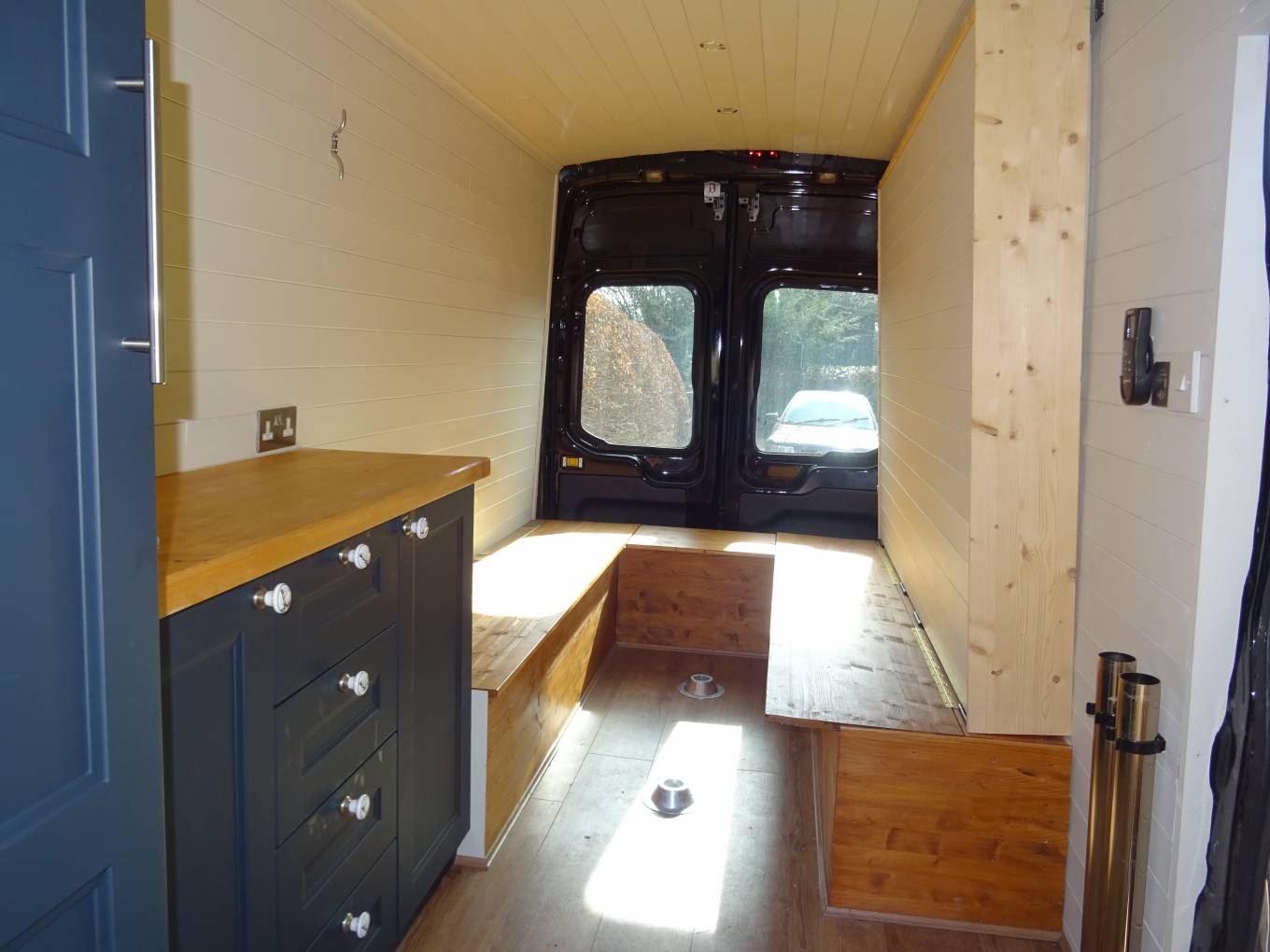 Pleased to offer this 2 berth Camper converted. As you enter through the side door you have a good size storage cupboard. Located in the Watton area. The kitchen area has good storage with a sink,worktop and roof fan. It comes with a Leisure battery, and inverter. At the back of the camper there is U shaped lounge area with a fold down double bed with storage underneath. With 6 speed manual gearbox, 3 belted seats, MOT expiry date 31/01/2025 comprehensive service history, small above cab storage.