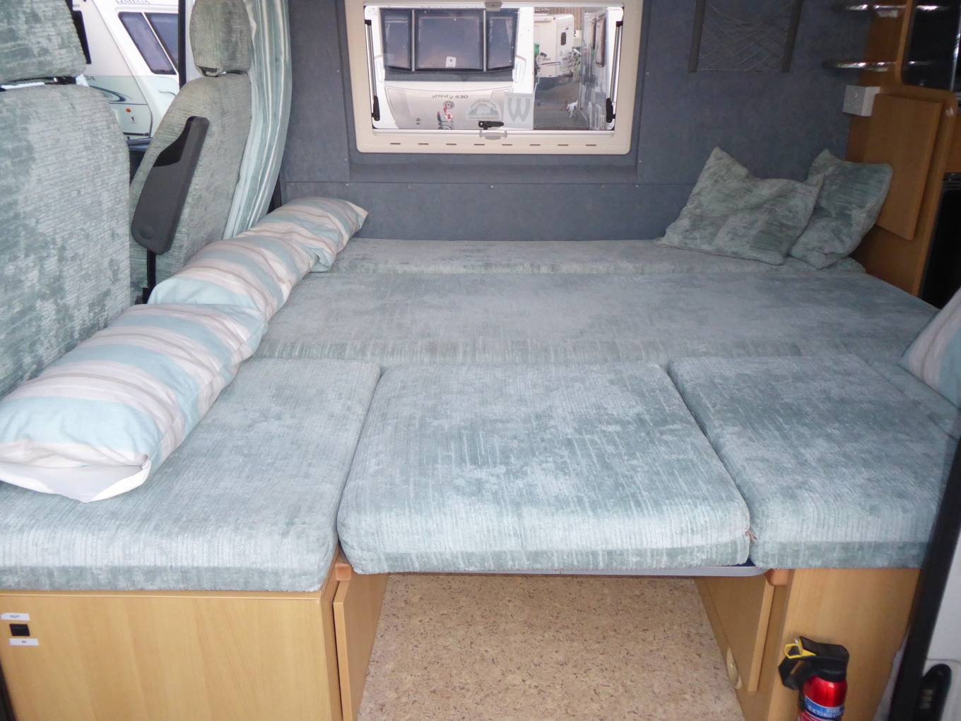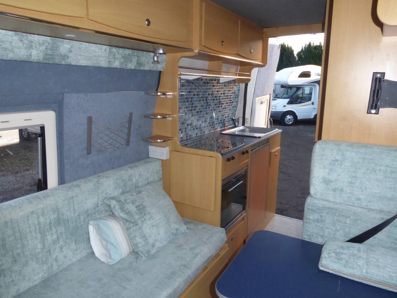 vehicle is home to a kitchen with full facilities including a hob (4 gas