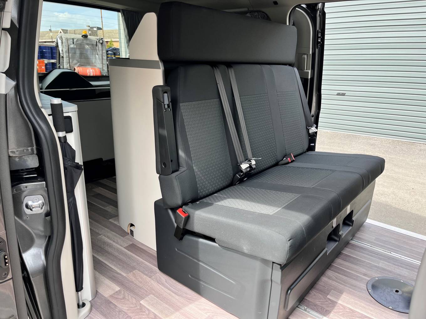 As you step inside the van you have the rock’n’roll bed, which can seat