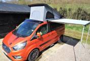In metallic orange glow this 4 Berth Ford Tourneo Custom Titanium 2.0 TDCi Euro 6 was first registered 1 Feb 2020 and has the automatic gear box at 130 Bhp. There are 12281 miles on the clock and an MOT till 2 Feb 2024, it also has Full Service History with the last service on 9th Feb 2023 and it's been Hab checked, the latest check on 23 May 2023. There are 5 full belted seats (Iso fixing) 2 sets of keys, alarm and tracker. This Camper Van is 4.9 metres long, 1.9 metres wide and located in Chesham.