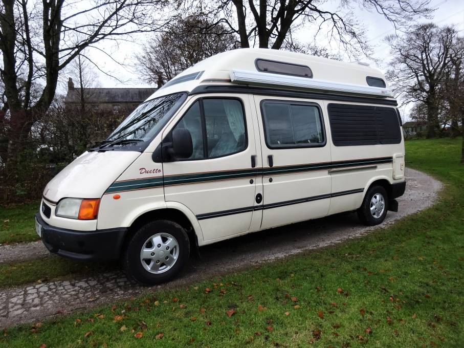 A lovely 2.5 Manual Diesel Ford Transit Coachbuilt Hi-Top Camper Van with 3 seatbelts and beds for 2-3 people.