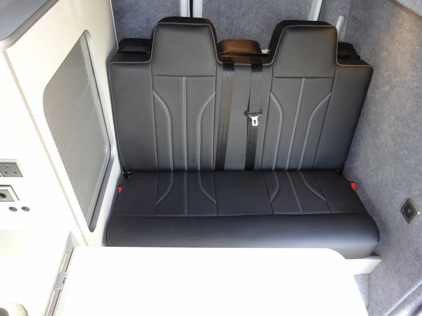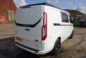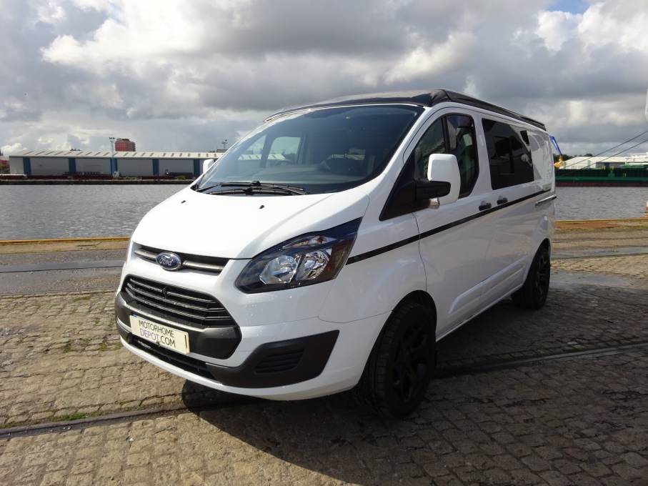 We present for sale this 2015 (65 reg) Ford Transit Custom 290 Eco Tech. Recently converted by JEM Campers to a high standard of workmanship. The van has only covered 22868 miles and can be used as daily transport, a day van or indeed a Camper Van! On the outside we have gleaming white body work in excellent condition. The white paint is complimented by black highlights that include the pop up roof, the tinted windows, a discrete branding coach line and the finishing touch to the look is a set of black alloy wheels. Inside the conversion has been thoughtfully matched to the exterior. High gloss light grey materials have been crafted to hand make the kitchen facilities that include a Dometic/Smev 9222 stainless steel 2 burner hob combined with sink. The gloss black fold up sink covers give extra worktop space when needed. To the right of the worktop is the electrical control panel with 3 pin sockets in the same panel. Above the kitchen are two small drop down storage spaces. Below the sink is the Waeco CRX50 fridge with freezer compartment. In the larger cupboards below the sink we have the 20 ltr fresh water supply. There is a 23 ltr grey water tank underneath too. More storage space can be found in the other under sink cupboard, in the roller shutter door nest to the rear seat as well as under the seat and in the top locker in the rear. The gas bottle is located in the rear lower locker. The dining table stores away on the back door when not in use. The double front passenger seat swivels around to face the interior and with the pop top roof popped up there is good standing height. For seat belts there are 3 in the cab and 2 more on the Fabworx M1 Double Rock and Roll bed. The seat looks great in black with contrasting stitching. When dropped this bed makes a good flat space about 6 feet long. The other sleeping area is of course in the pop up roof, easy to pop up or down there is a great space for 2 with a front facing clear window with roll up cover. A zippered vent on each side prevents heat build up. LED lighting throughout. The van has been fully insulated as a part of the conversion.Two large Sony speakers at the rear will provide a soundtrack for you.