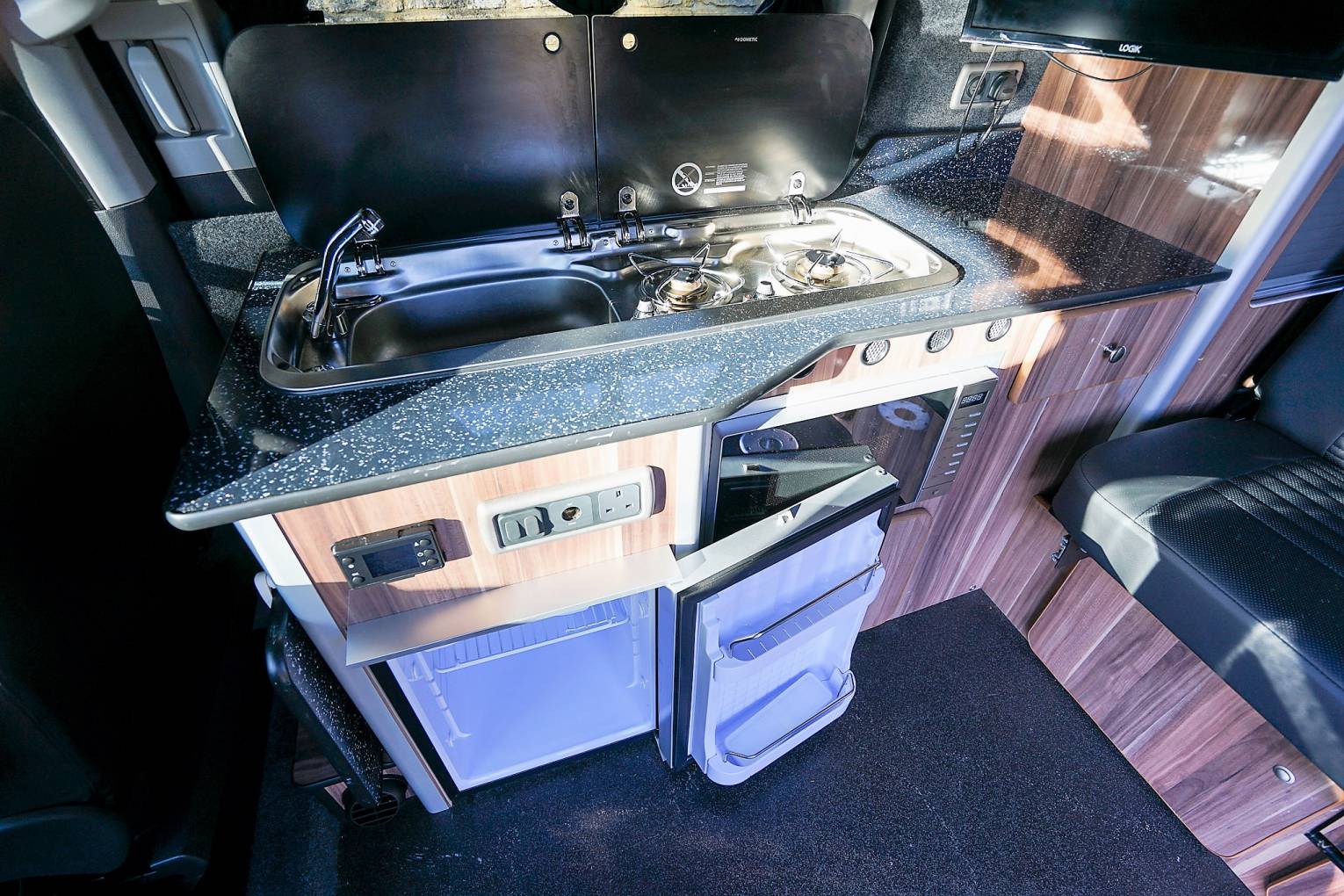 with Diesel Heating, Microwave, Fridge, Sink, 2 burner Hob, TV, Rock n Roll bed,