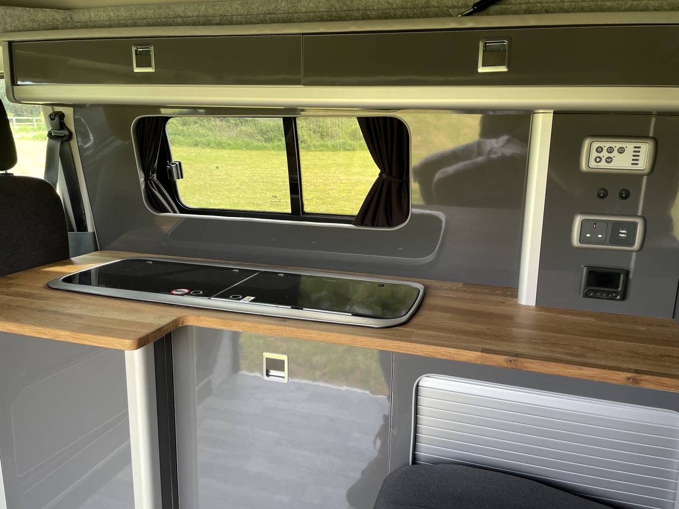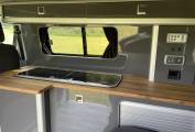 The van features, a Skyline pop-top, high gloss cabinets and wooden worksurface, good storage space, a comfortable "rock n roll" bed, diesel heating and revolving front bench seat.