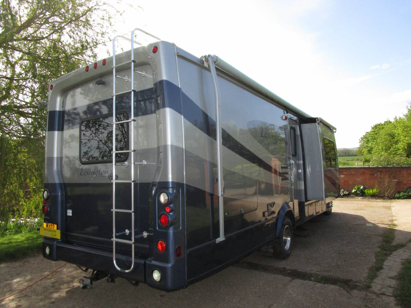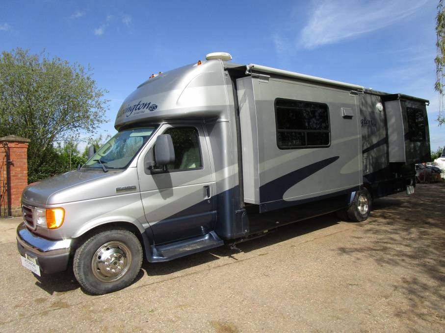 Based on the Ford F450 Chassis with a 6.8 V10 engine and automatic transmission we have this extremely low mileage Forest River Lexington GTS 283 TS. The Lexington is a extremely well equipped vehicle benefiting from three slide outs which create a huge amount of internal space, the large front lounge area benefits from a three seat leather sofa bed with seat belts and a four seat dining area. There is a well equipped kitchen complete with a large fridge freezer, solid surfaces, a combination microwave oven with three ring hob, extractor fan and sink. Moving towards the back of the vehicle we have a WC with toilet and hand basin and a separate shower cubicle opposite. At the rear of the vehicle we have the bedroom with side facing island bed and a huge amount of storage. This particular Lexington also benefits from the full body paint option, satellite system, refillable gas tank, habitation and cab air conditioning, built in generator, surround sound, invertor, electric levelling jacks, tow bar, reversing camera, solar panel, rear ladder and LPG conversion. Please contact me on 07572 398972 for more information or to request the extended picture file.