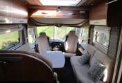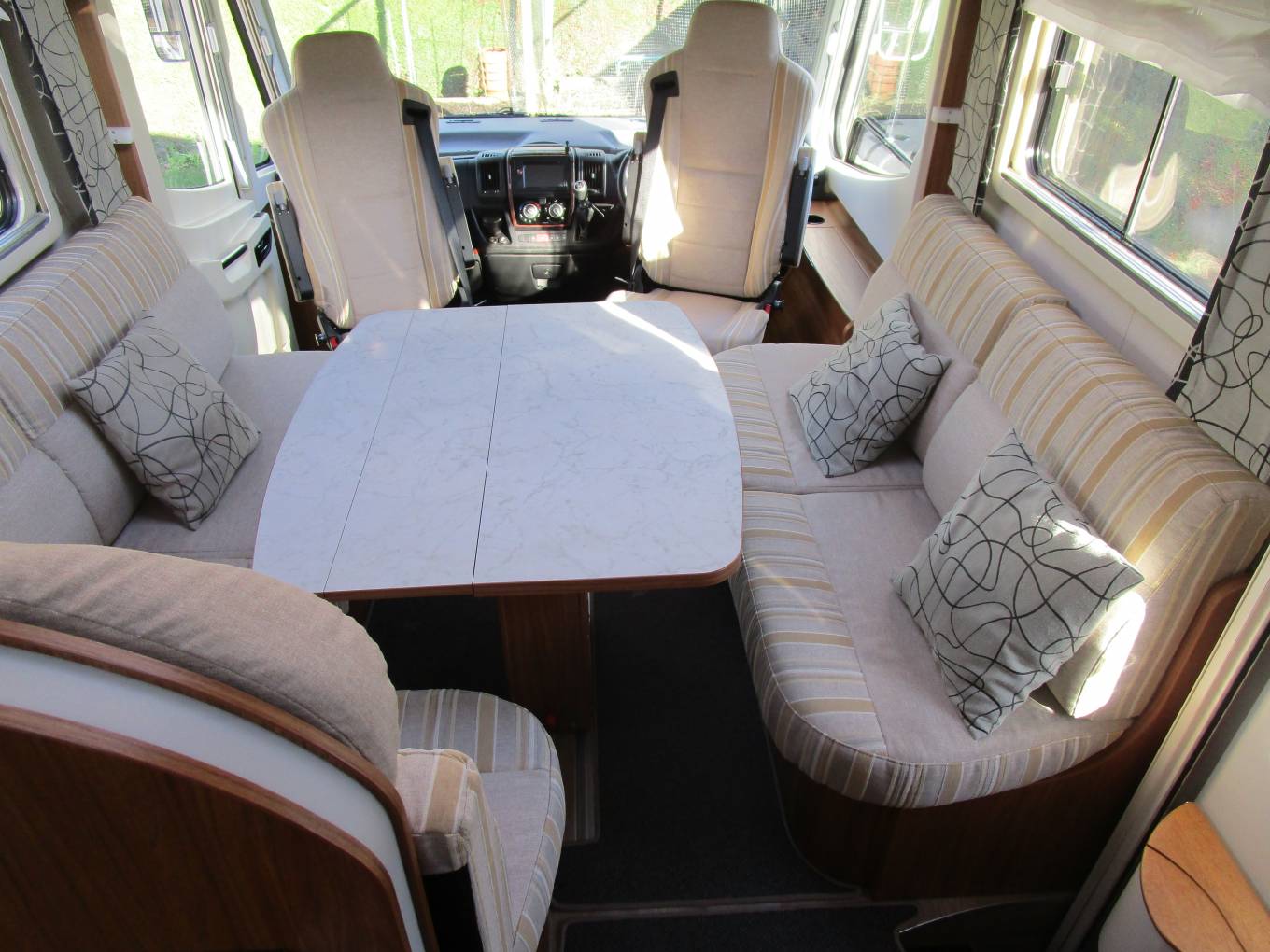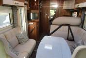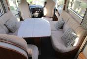 The front of the motorhome provides the ideal area to relax and also provides the additional two 3-point seatbelts. The area is spacious and versatile offering seating for 6 and along with the extendable and directional dining table and the two Captain Seats is perfect for dining.