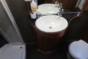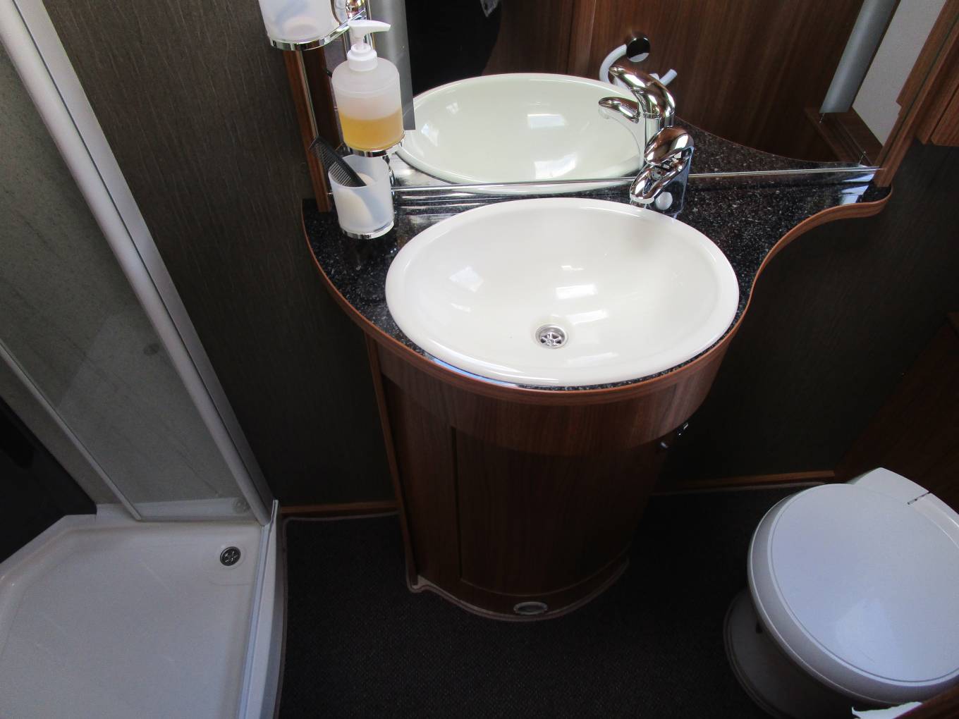 To the rear of the vehicle you will find the spacious washroom which consists of a separate shower cubicle, hand wash basin with vanity unit and Thetford cassette toilet.