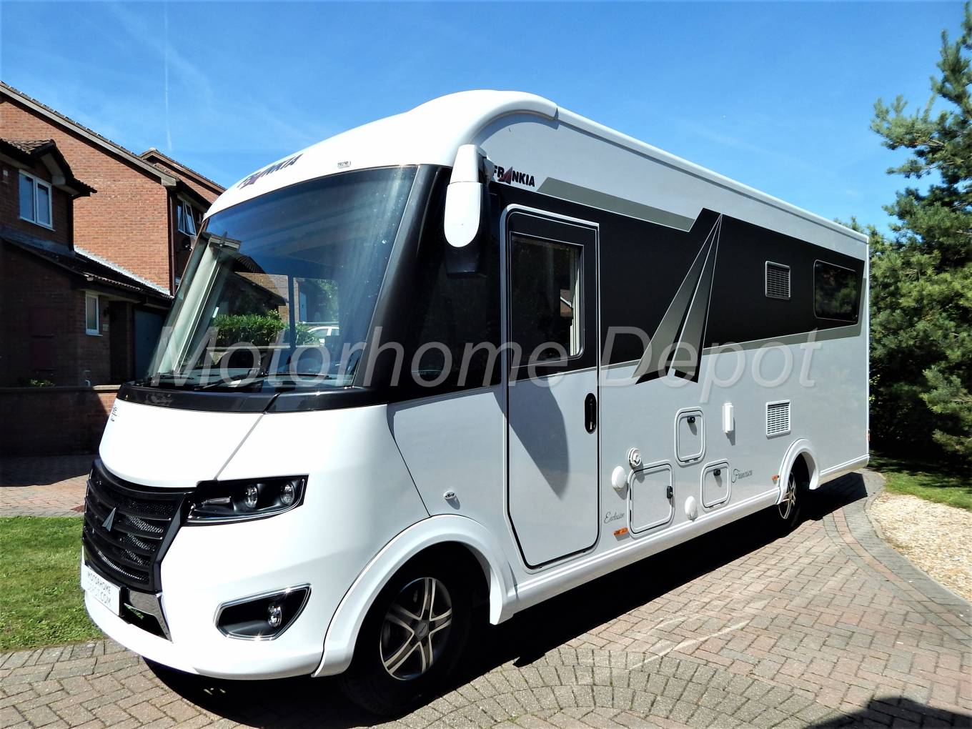 A Stunning rear lounge model by one of Germany's finest A class manufacturers Frankia. This I740 Plus Exclusive model is packed with goodies and is a the perfect travel companion for two people with the option of additional passengers if required. First registered in 3/19 it has had one owner from new and still benefits from manufacturers warranty. The F-Line based on Fiats ever popular Ducato chassis with a 2.3 litre 150 bhp turbo diesel engine with the Comformatic 6 speed automatic box. The cab benefits from: Air Conditioning; Cruise Control; Traction Control Plus; Hill Descent; Blaupunkt multi media system with Navigation, Bluetooth, Aux & USB in; Electric Heated Mirrors; Twin View Reversing Camera. There is a large full width blind to the front screen that can be dropped from the top or lifted from the bottom. The side windows have Remis blinds. The front seats rotate so that you can take a brake from the road. As you would expect for a vehicle of this late plate it is presented in immaculate condition.