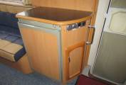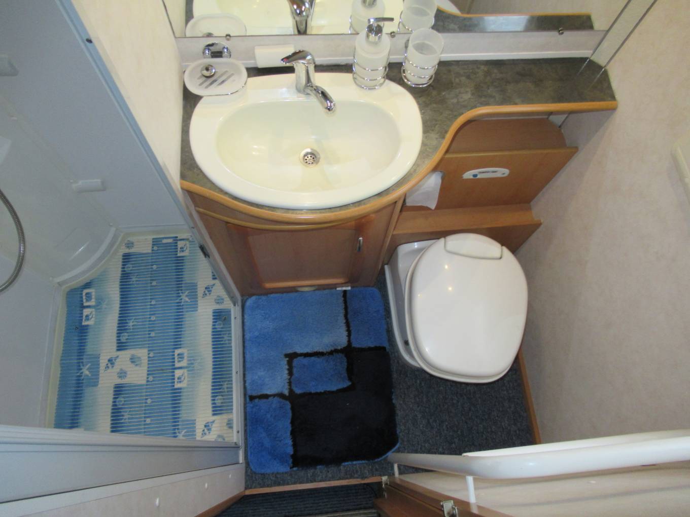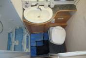 At the rear is a large bathroom which houses a separate shower cubicle, sink and Thetford cassette toilet (with SOG System) with loads of cupboard space for toiletries, alongside a large wardrobe with ample hanging and shelf space.