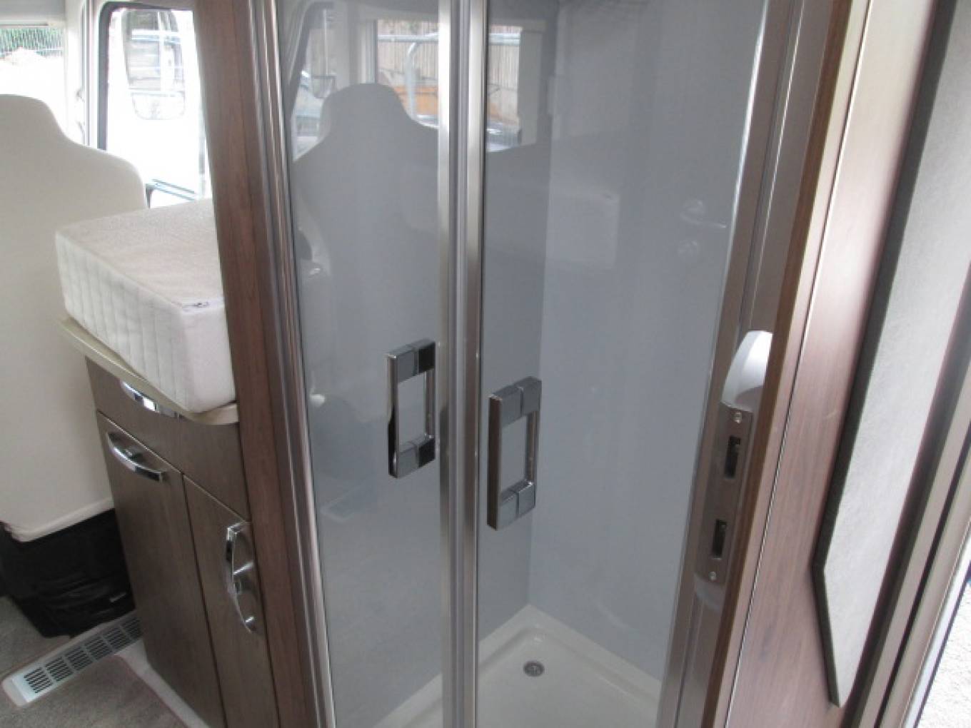 This Motorhome benefits from a Separate Full Size Shower Cubicle - opposite is the Washroom with Toilet and Washbasin